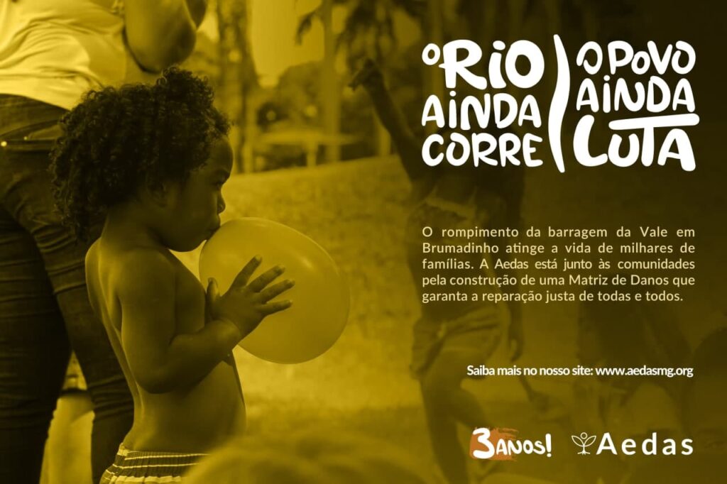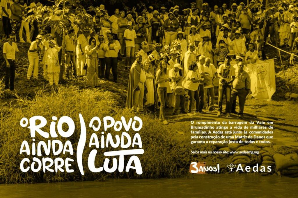 A Associação Estadual de Defesa Ambiental e Social (Aedas) lança a campanha “O rio ainda corre, o povo ainda luta” a fim de prestar conta do trabalho desempenhado ao longo de 2021 em defesa dos atingidos e atingidas pelo rompimento da barragem do Córrego do Feijão, na cidade de Brumadinho, em janeiro de 2019. Esse reforço institucional de fim de ano relembra as conquistas para o processo de reparação integral e a projeção para o futuro dos desafios em prol da causa, construída junto à Aedas por meio da luta coletiva dos atingidos/as.
