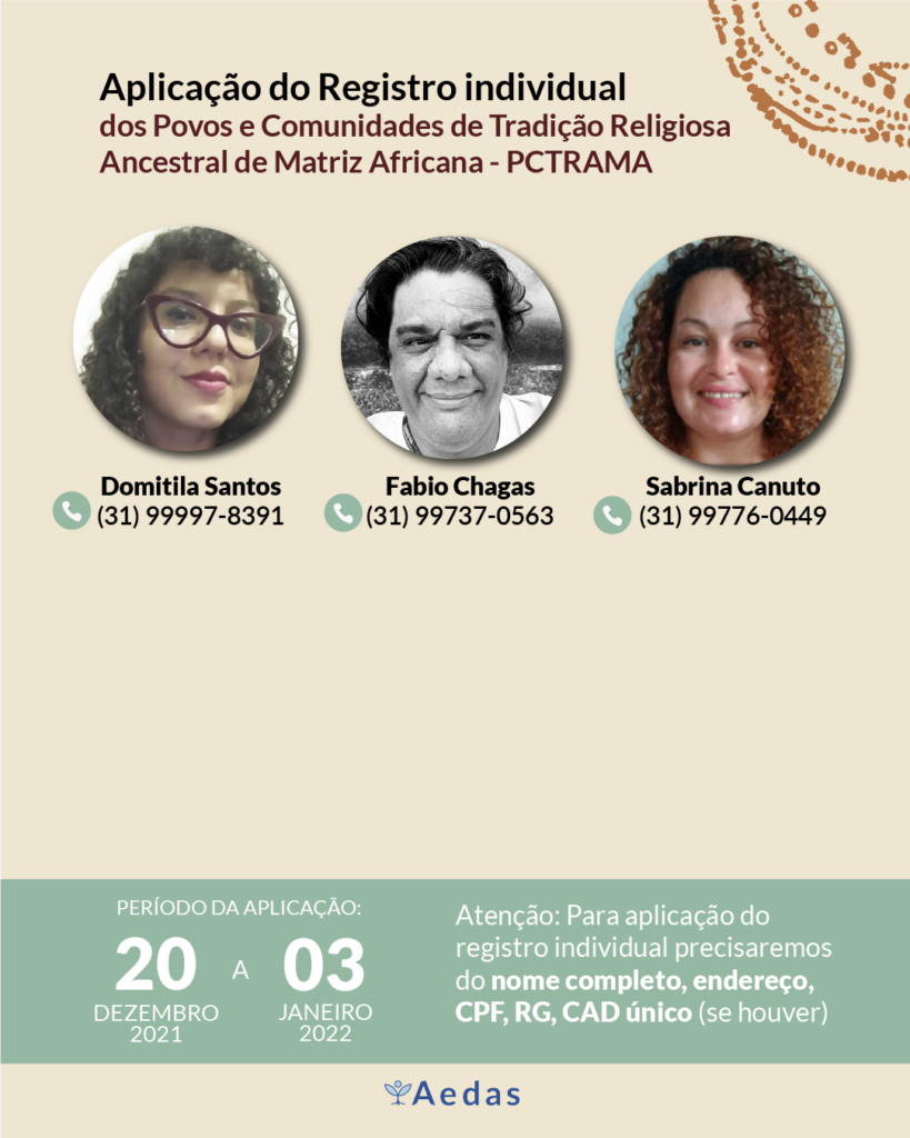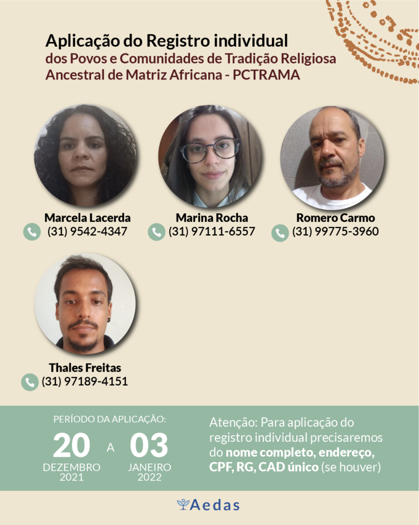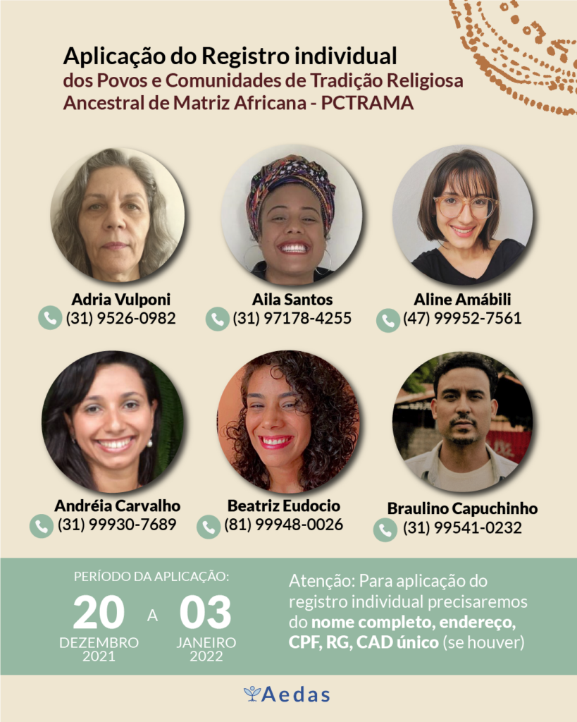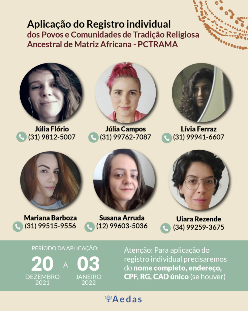 Existe uma equipe específica da Aedas entrando em contato para fazer a aplicação do registro individual por meio de ligação telefônica no período até o dia 03/01/2022.
