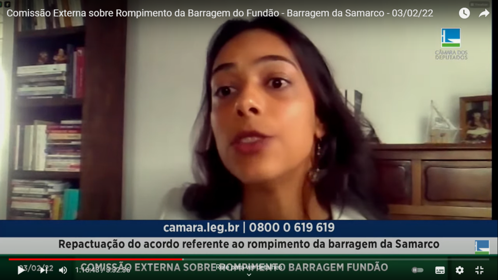 Na oportunidade, Ísis Táboas, advogada e coordenadora da Aedas, assessoria técnica independente dos atingidos em Brumadinho, defendeu o controle social da população sobre os investimentos para a reparação integral.