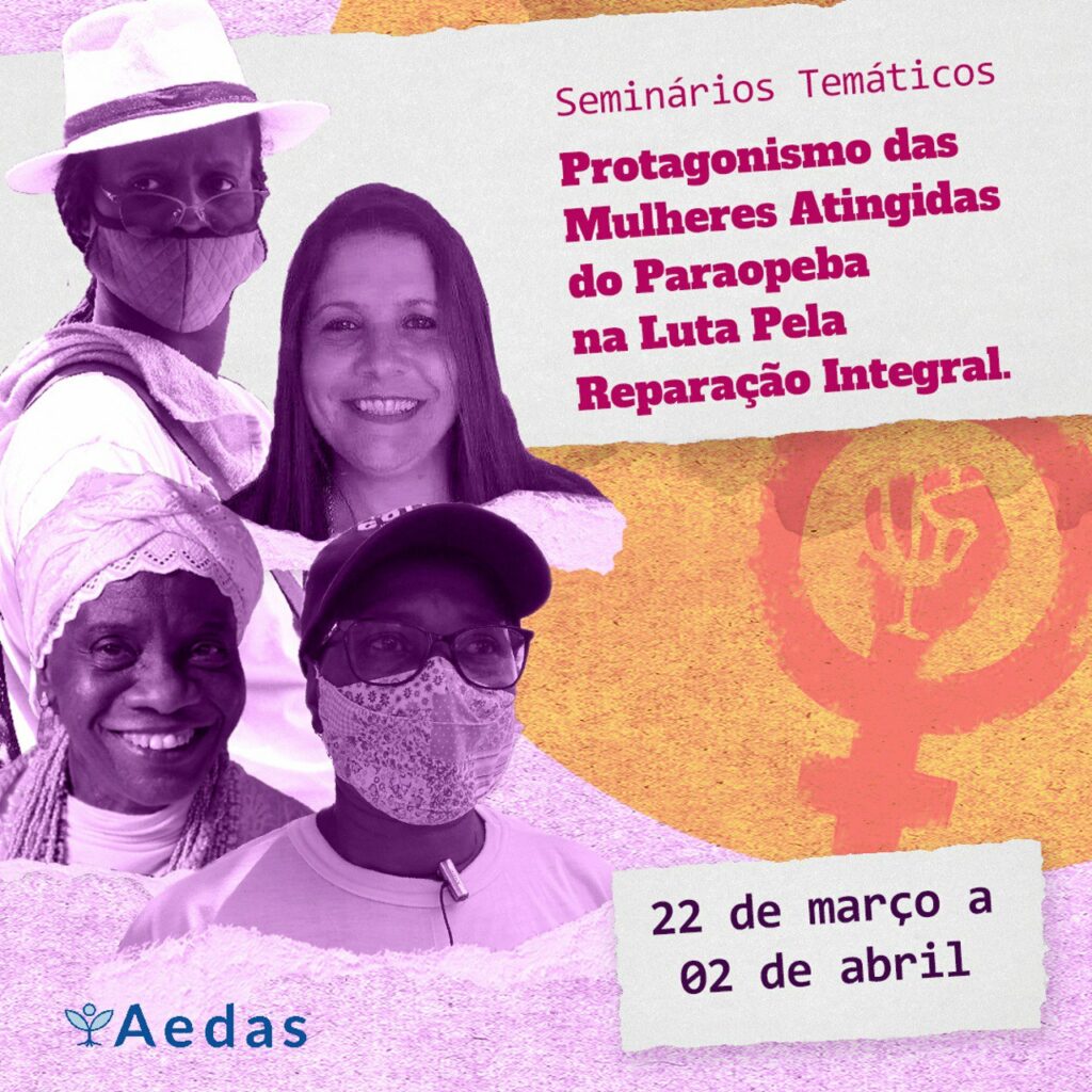 Neste mês de março, estão previstos seminários temáticos com mulheres atingidas para dialogar sobre danos específicos. Com o objetivo de fortalecer os espaços de participação informada, a Equipe de Monitoramento de Gênero da Aedas irá realizar os Seminários Temáticos de Mulheres, que contará com a presença de mulheres atingidas da R1 e R2.