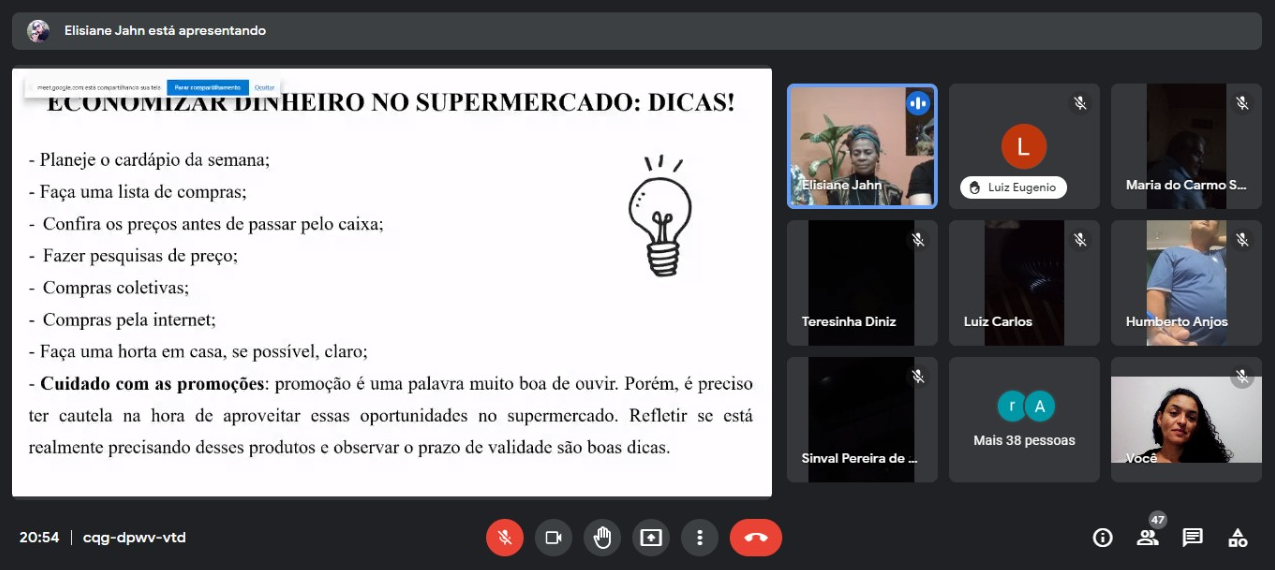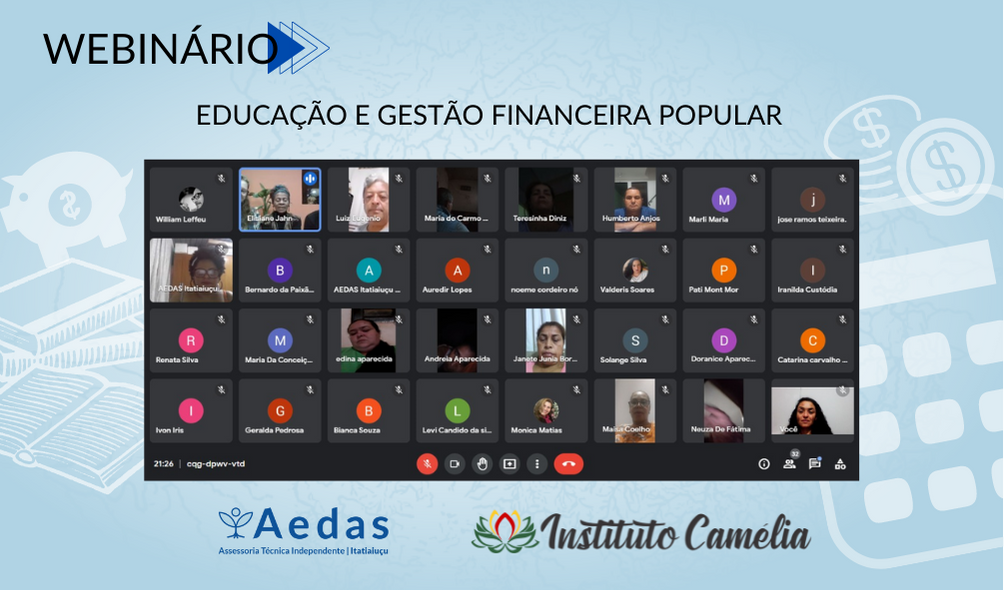 Como podemos melhorar o uso do dinheiro no nosso dia a dia? Por que é importante discutir educação financeira? Como se planejar e conseguir gerenciar o seu dinheiro? Estas foram algumas das perguntas que o Webinário Educação e Gestão Financeira tentou responder durante o encontro realizado com atingidos e atingidas de Itatiaiuçu na noite de quinta-feira, 12 de maio. O encontro teve a mediação do Instituto Camélia de Porto Alegre/RS.