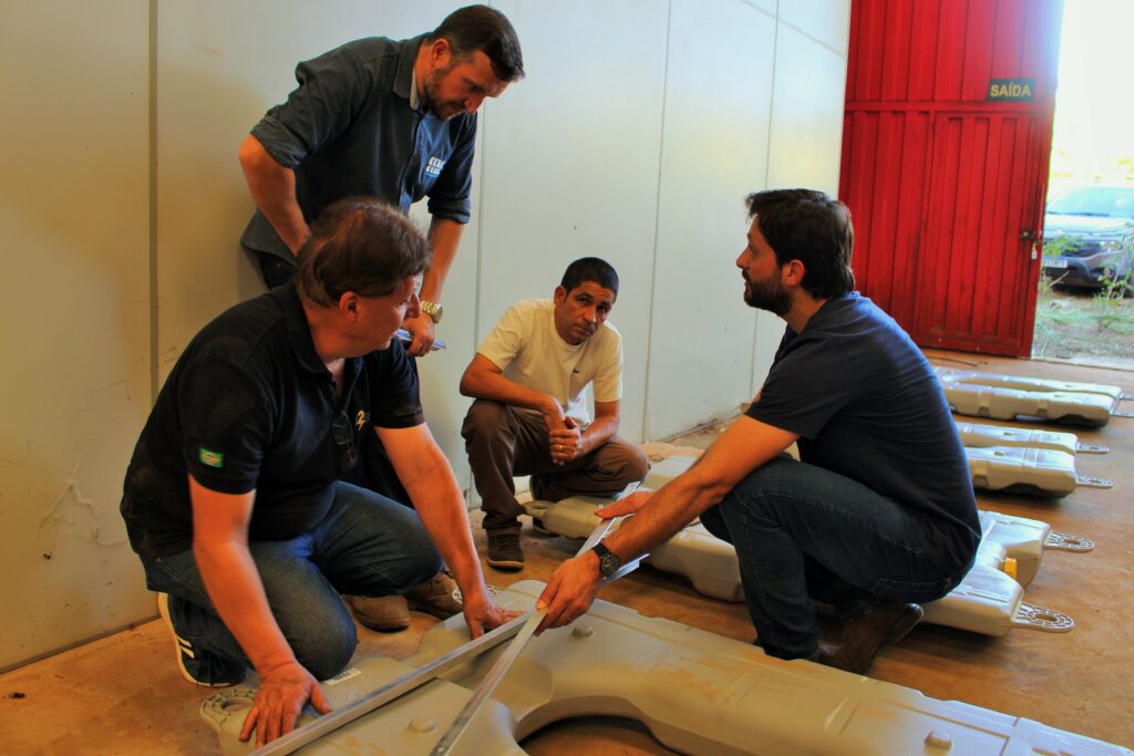 Como parte desse ciclo de planejamento, foi realizada, no último dia 04, a visita para inspeção dos flutuadores da usina solar, armazenados em um galpão na cidade de Montes Claros. Estiveram presentes: Luis Shikasho, integrante da Coordenação de Projetos da Aedas; o Consórcio Veredas Sol e Lares (CVSL), representado pelos engenheiros eletricistas Oberdan Savaris e Michel Rocha; a empresa Fotovoltaico Flutuante Brasil (F2B), representada por Orestes Gonçalves Jr; a Cemig, na pessoa da Rodrigo Nascimento; e a empresa Efficientia, representada por Luiz Fernando.