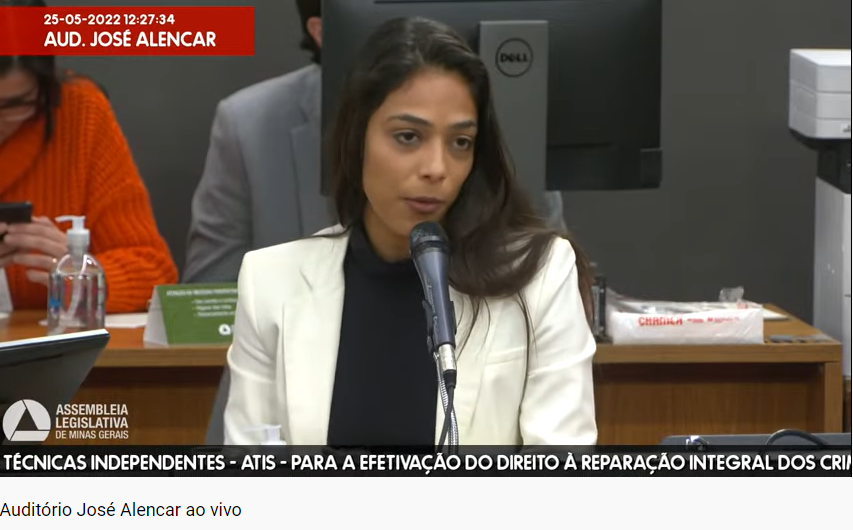 Representando as famílias atingidas de Itatiaiuçu, participaram da audiência os membros da Comissão Márcio Piedade e Patrícia Odione. Para Patrícia ter a assessoria técnica acompanhando o processo é sinônimo de participação e construção coletiva. Em suas palavras, “foi fundamental e ainda está sendo fundamental o acompanhamento da assessoria, pudemos participar de forma direta na construção da matriz de danos e todas as comunidades atingidas conheceram seus direitos”. A atingida também lembrou que “as pessoas da comunidade são simples, humildes e não sabiam dos seus direitos, sem a Assessoria Técnica as pessoas seriam esmagadas, teriam seus direitos violados pela mineradora”, concluiu.