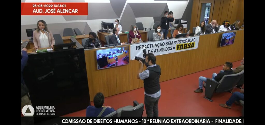 Atingidos e atingidas de Itatiaiuçu participaram de uma Audiência Pública promovida pela Comissão de Direitos Humanos na Assembleia Legislativa de Minas Gerais (ALMG), nessa quarta-feira, 25 de maio. A audiência teve como objetivo debater, na perspectiva dos direitos humanos, a importância das Assessorias Técnicas Independentes – ATIs – para a efetivação do direito à reparação integral dos crimes praticados pelas mineradoras em Minas Gerais.