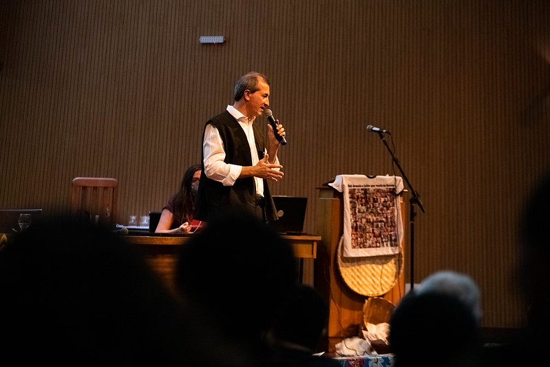 O professor Manoel Neto fez uma fala em nome de toda a equipe técnica da instituição que trabalhou no Projeto Paraopeba. Ele agradeceu à população atingida e reforçou o compromisso social da universidade com a reparação.