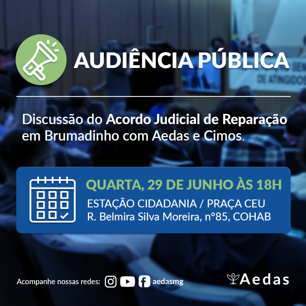 A Aedas reforça o convite a todas as pessoas atingidas a participarem da audiência e fortalecer o debate sobre o processo de reparação em Brumadinho.