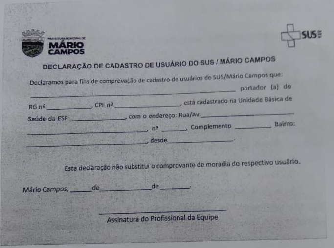 Onde posso solicitar a declaração em Mário Campos?
