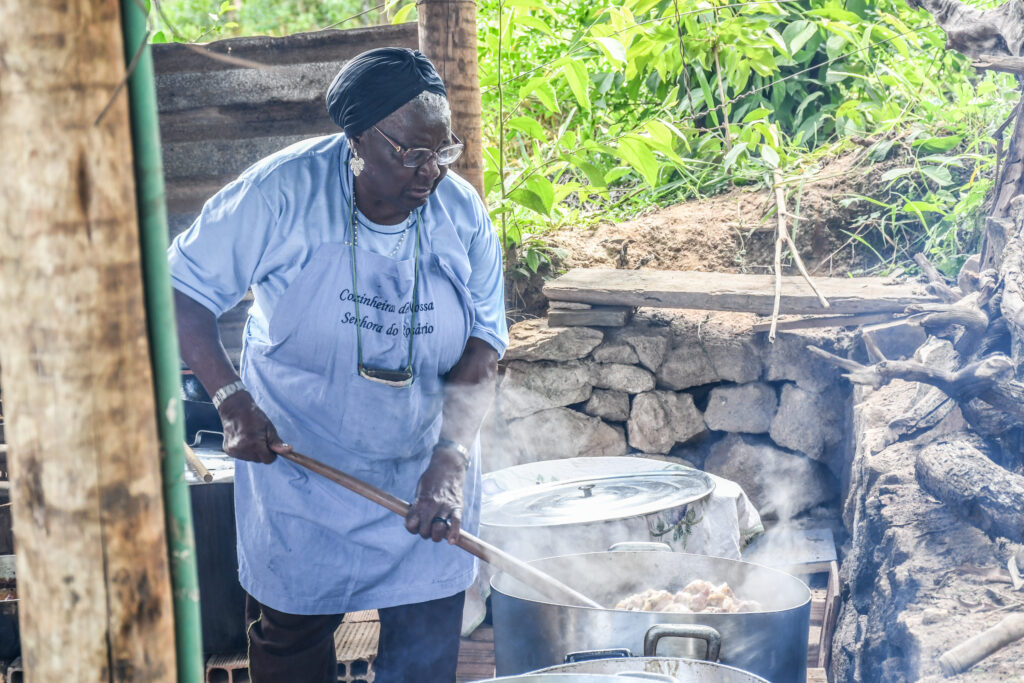 A quilombola Lucilene dos Santos, conhecida em Rodrigues como Lena, declarou a emoção de receber em sua casa a cozinha comunitária que ofereceu café e almoço às pessoas durante o festejo. “É união, a família unida e um ajudando o outro. Eu fico maravilhada e muito orgulhosa de receber essa festa na minha comunidade e poder colocar minha casa, minha família e meus irmãos para ajudar a continuar uma tradição da minha mãe, Eustáquio Vicentino”, declarou Lena.