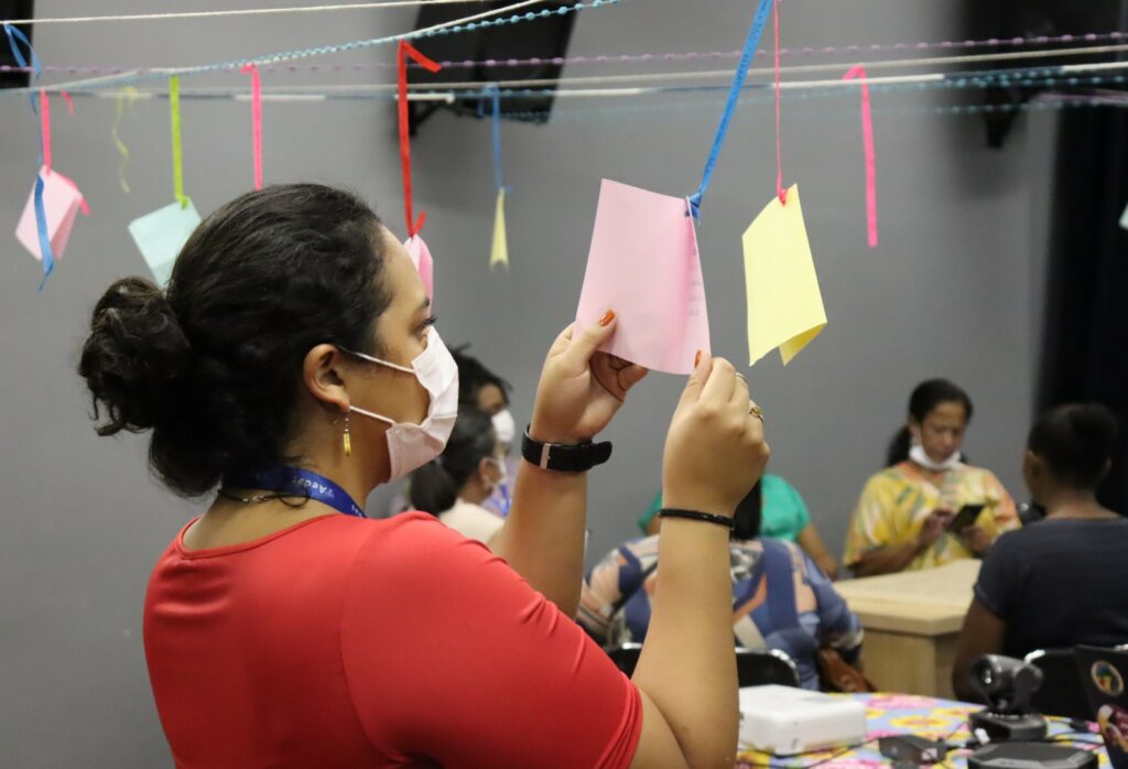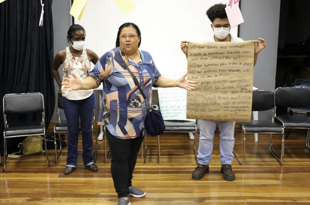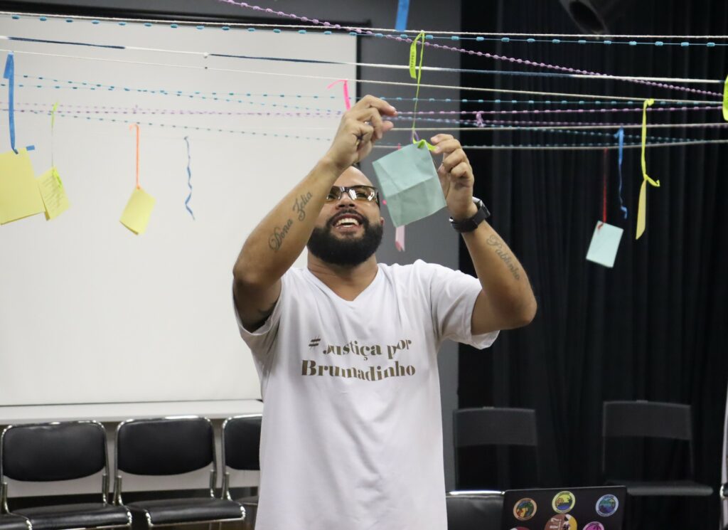 A equipe Ciranda da Aedas também se reuniu em paralelo ao espaço das Comissões. A partir de atividades educativas e didáticas, as crianças puderam brincar, partilhar e aprender sobre o processo de reparação, de um jeito mais compreensível para elas. Ao final, fizeram uma apresentação de jogral com o “Cordel de Reparação” na plenária – Leia aqui o cordel!