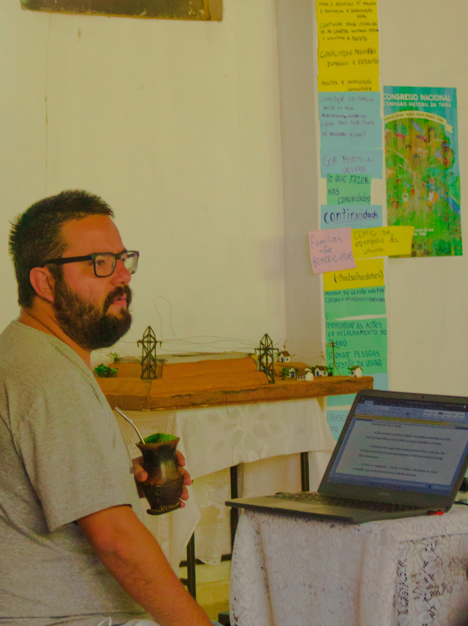 Emiliano Maldonado, advogado, pesquisador e assessor da Adai, em apresentação sobre marco Regulatório para gestão popular da geração distribuída. Registro feito durante seminário microrregional Revelações (Grão Mogol, agosto de 2022). Fotografia: Assessoria de Comunicação Aedas