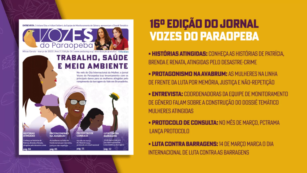 Ao todo, o Dossiê Temático contará com seis capítulos. O primeiro, divulgado no início desse ano, trouxe um Perfil das Mulheres Atingidas pelo rompimento da barragem da Vale S/A nas regiões 1 e 2.