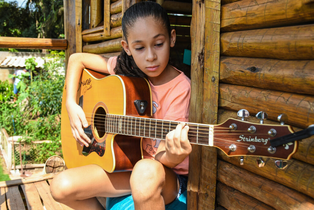 Alice também faz jiu-jitsu, aula de violão, gosta de desenhar, andar de bicicleta, brincar na casa de árvore de sua tia e jogar videogame com