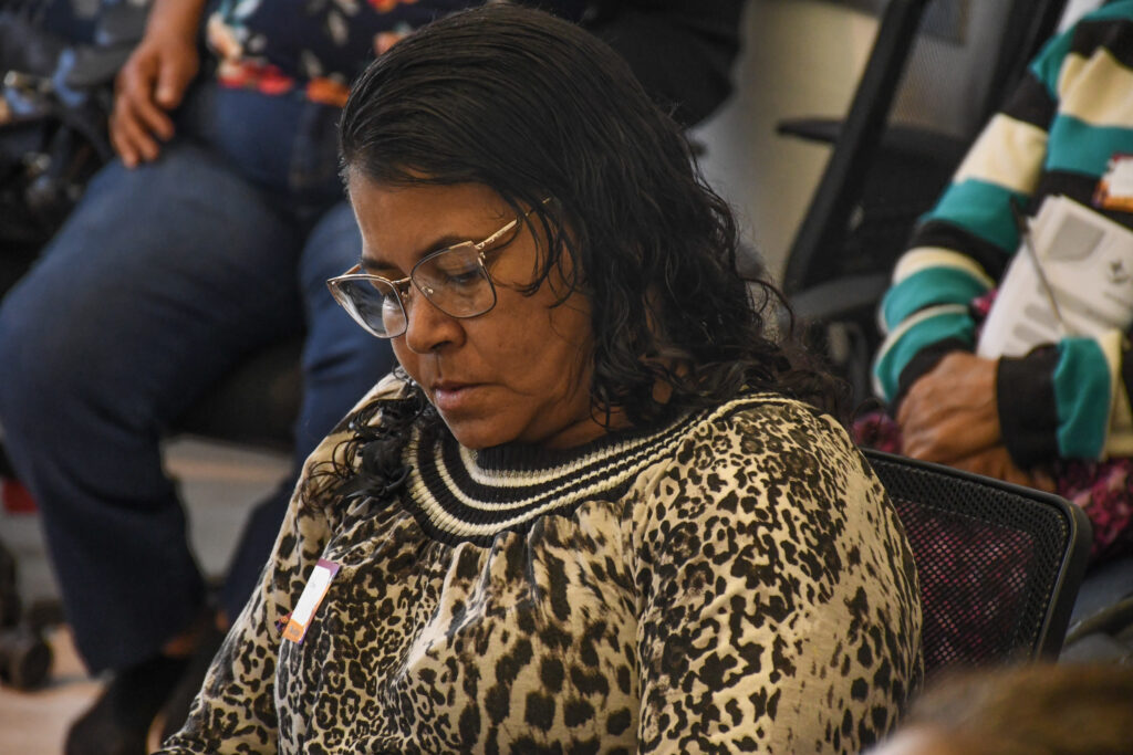 Maria Aparecida, conhecida como Paré, moradora do Tejuco, comunidade de Brumadinho, diz que “o Acordo de Reparação no Campo da Saúde e Meio Ambiente só entra dinheiro e não tá tendo retorno.”