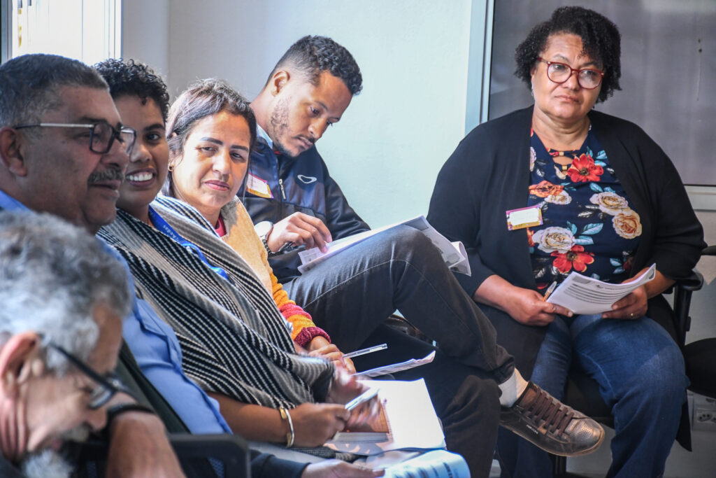 Durante as reuniões dos coletivos, a equipe da Aedas faz discussões técnicas e ouve as preocupações das pessoas atingidas com relação a execução e resultados dos estudos que envolvem a saúde e o meio ambiente.