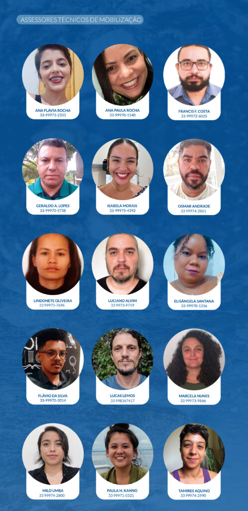 Acompanhe abaixo a composição das equipes de Mobilização e Áreas Temáticas, responsáveis por realizar atividades nas comunidades e visitas nas casas das pessoas atingidas durante a aplicação do Registro Familiar e consolidação de demais espaços participativos.