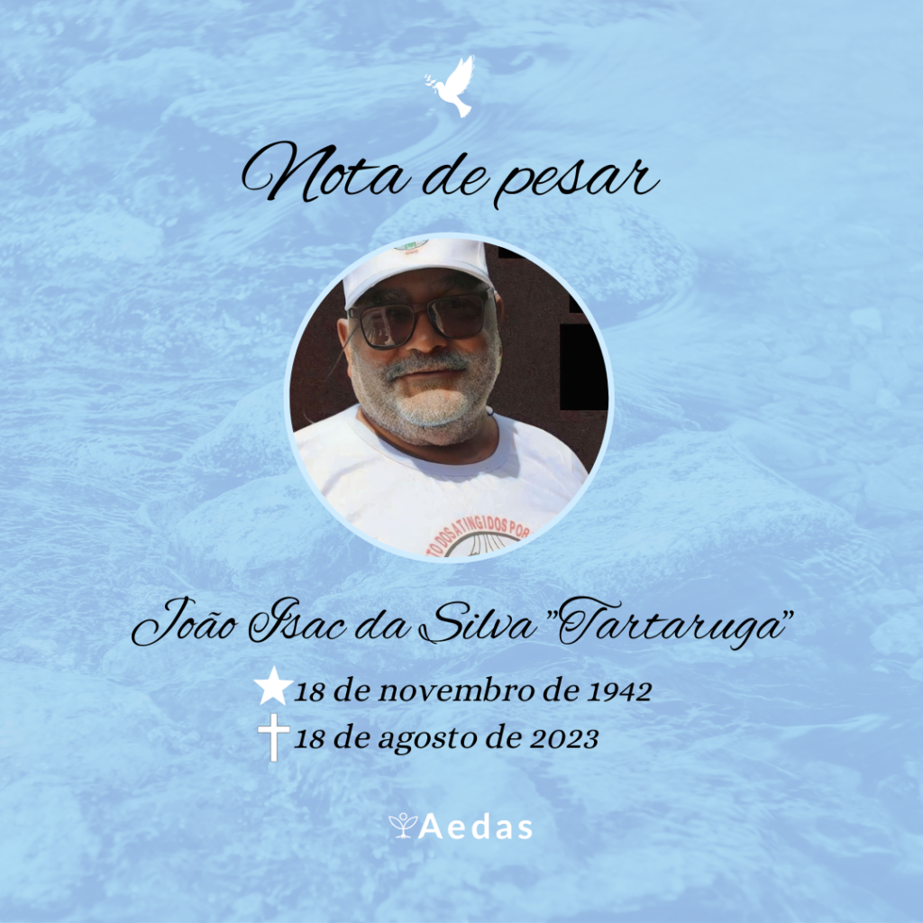 A equipe da Associação Estadual de Defesa Ambiental e Social (Aedas) recebeu com muita tristeza a notícia da passagem do Sr. João Isac da Silva, carinhosamente conhecido por “Tartaruga”.