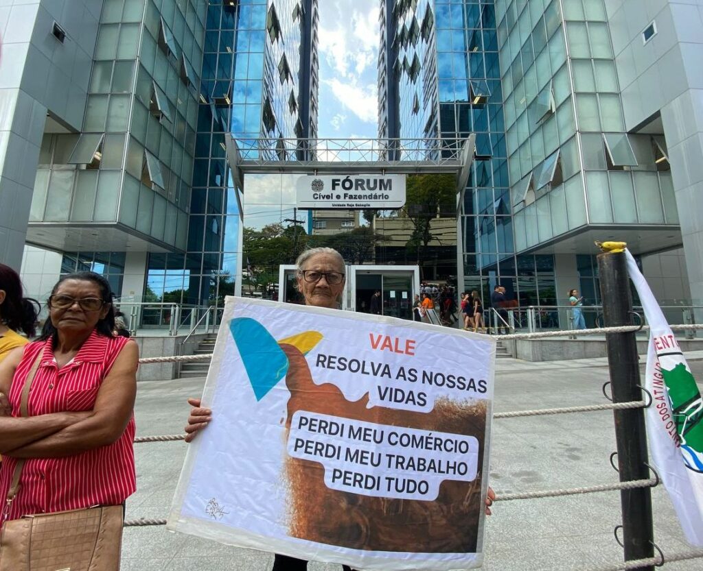Na manhã desta terça-feira (26), dezenas de pessoas ocuparam a frente da 2ª Vara da Fazenda Estadual, em Belo Horizonte, para cobrar participação e a garantia de que liquidação da sentença genérica, que condenou a Vale a reparar todos os danos causados pelo rompimento, ocorra pelo processo coletivo.