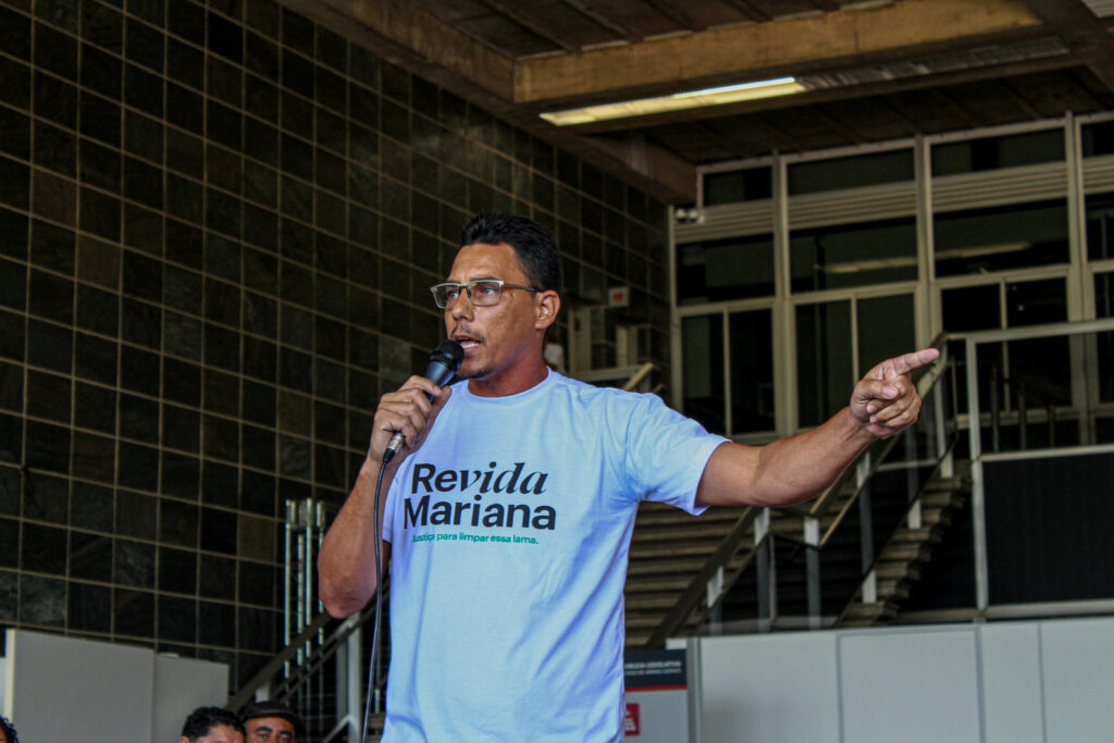 Weverson Miranda, da Associação de Pescadores de Conselheiro Pena, participou do dia de luta junto à uma caravana de 23 pescadores e ilheiros do município. Ele destacou a dura realidade experimentada pela população que perdeu direito ao trabalho e ao contato com o Rio. “O pescador come o peixe que está contaminado, mas não pode vender os peixes pra chegar na mesa dessas pessoas grandes. Eu venho trazer um alerta, estão discutindo a repactuação, cortaram pagamentos do auxílio financeiro, estão tentando discutir um outro pacto, como vai ser isso? Nós temos o direito de saber o que está sendo discutido em nosso nome. O pescador tem direito, o principal atingido somos nós. Uma pessoa que foi retirada do seu ambiente natural, da sua casa, o seu emprego, […] isso vai gerar angústia, depressão, ansiedade, não somente ao pescador, mas para toda a família”, declara.