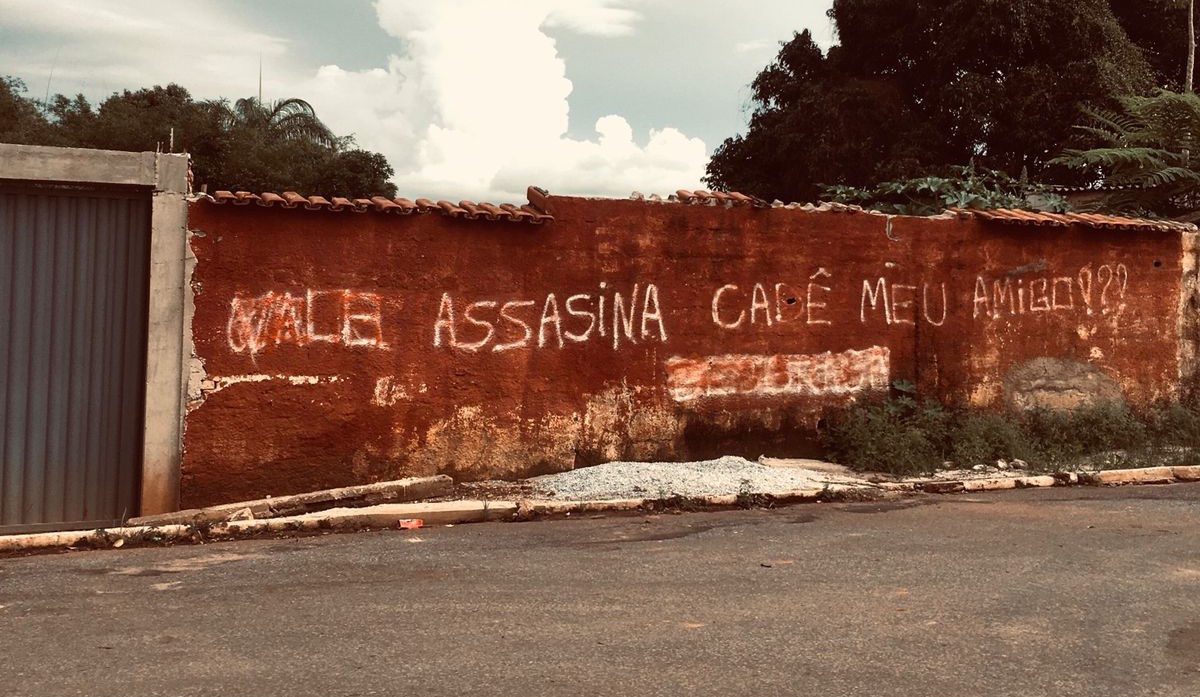 Muro do Tejuco escrito: “Vale assassina, cadê meu amigo?” | Foto: Felipe Cunha