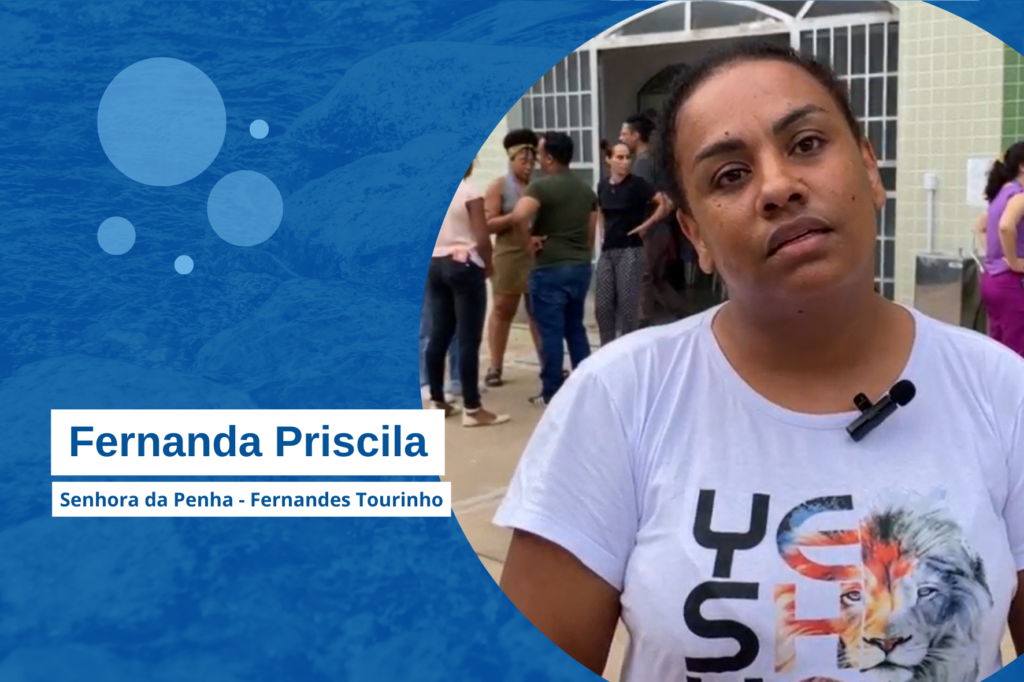 O principal dano do meu distrito é pesca e água. Hoje não se consegue pescar e nem vender. Meu pai é pescador, meu marido, os meus irmãos. A gente se reinventou e procurou outros caminhos, com o rompimento a gente migrou para outra localidade. A gente vivia de pesca, ele automaticamente perdeu a nossa principal renda. Escrevemos outra história. O meu pai recebia o AFE e o Novel, eu entrei como dependente, porém ele recebeu e eu não. O meu marido aguarda na décima quarta vara um processo longo e demorado. Tem muita gente esperando para ser, pelo menos, um pouco reparado pelo dano que sofreu. Hoje a gente compra água para poder beber e usa água da cisterna para fazer outras coisas, a água da cisterna também não temos segurança de beber”