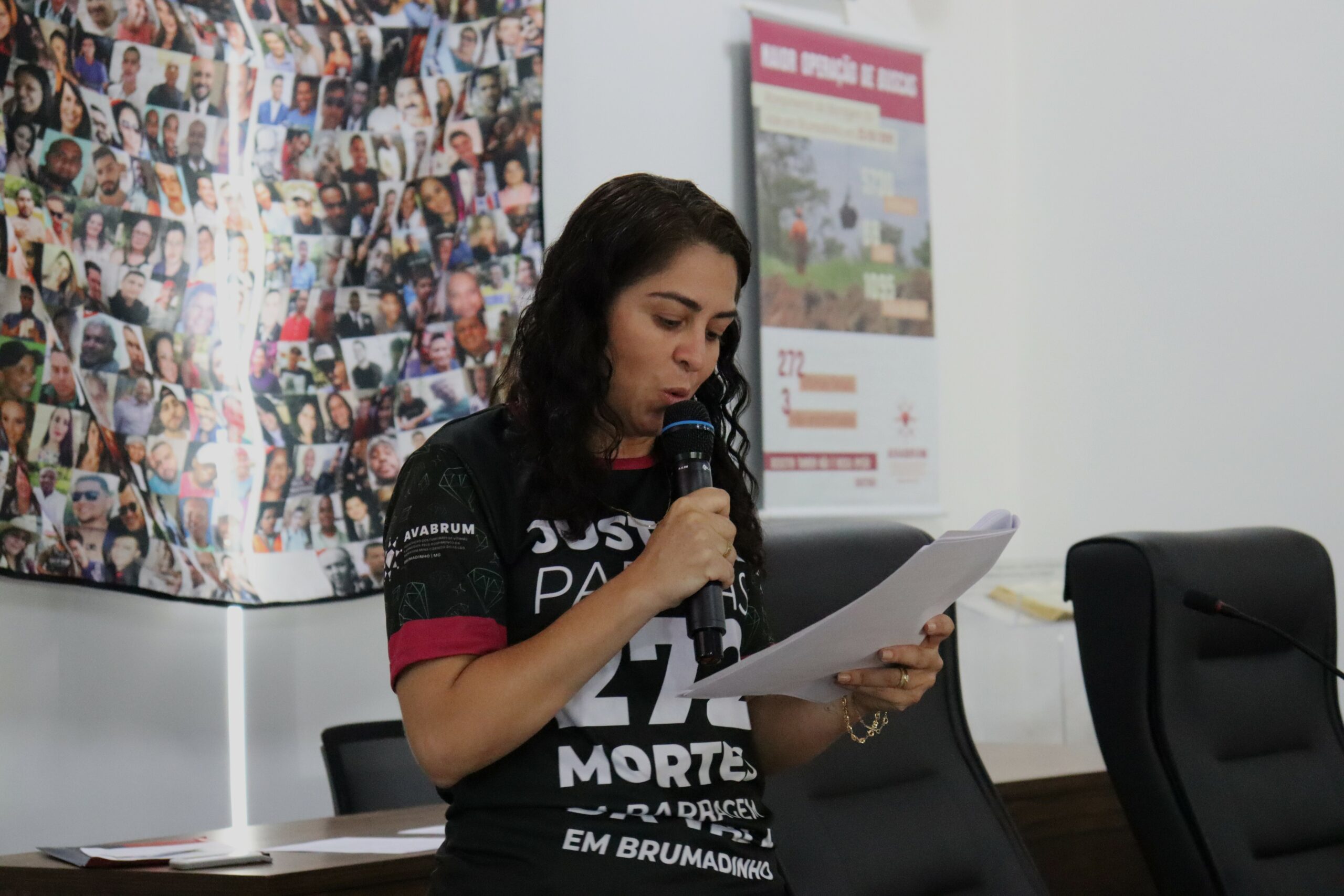 “Sem justiça, não há reparação. Sem justiça, crime ele torna-se potente e recorrente. Então é essa ação, é essa a luta que move a AVABRUM. Nós não queremos que ninguém passe pela dor que nós passamos. Nós não queremos que ninguém sofra aquilo que nós sofremos em 25 de janeiro de 2019” – Andresa Aparecida Rocha, presidente da AVABRUM, durante o seminário.