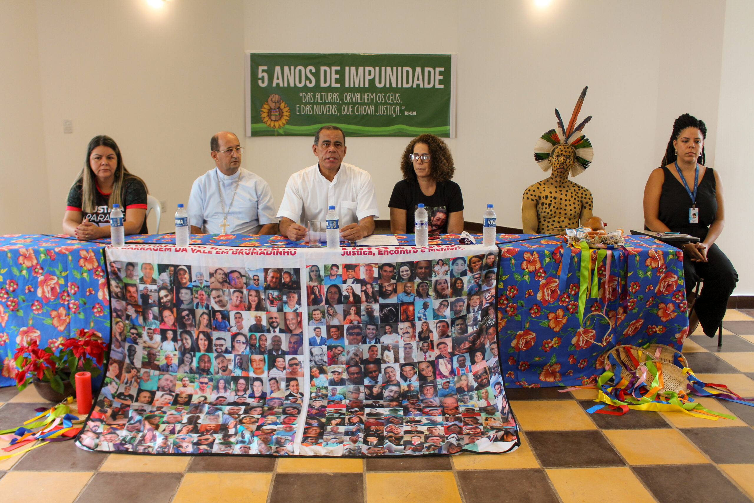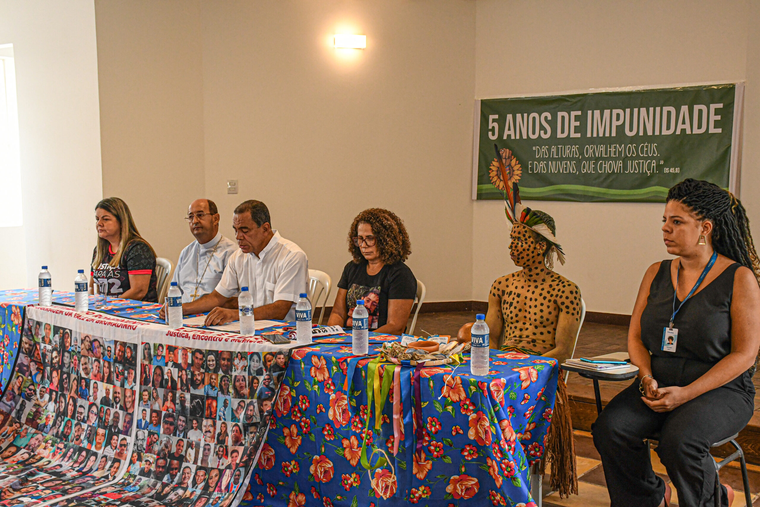 Iniciando o dia de atividades dos 5 anos de rompimento da barragem em Brumadinho, na V Romaria pela Ecologia Integral a Brumadinho, uma coletiva de imprensa abordou os temas centrais desse momento. Em suas falas, os membros da mesa destacaram a impunidade dos responsáveis pelo desastre crime, o prolongamento de danos e o pedido por justiça.