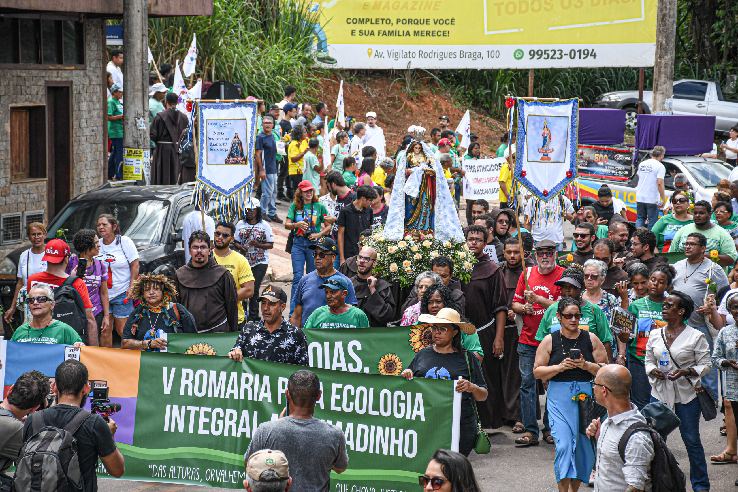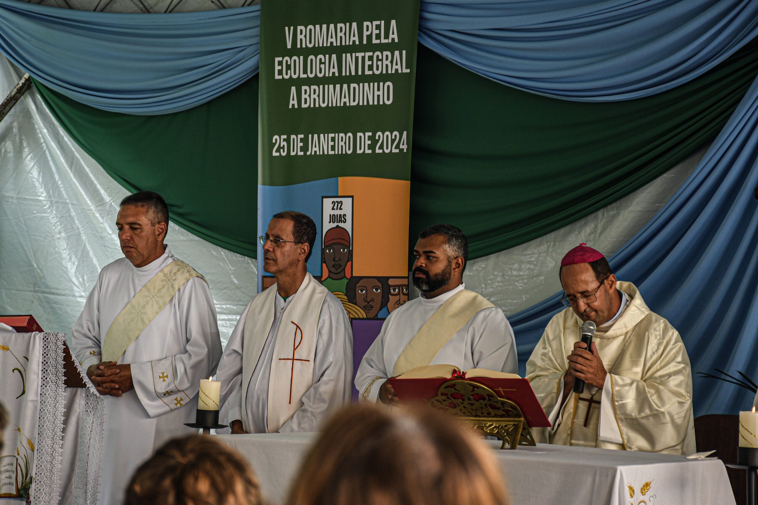Em seguida, os romeiros participam de uma celebração eucarística no Santuário de Nossa Senhora do Rosário presidida por Dom Joel e participação de Dom Francisco Cota, bispo da diocese de Sete Lagoas e presidente da Comissão para Ecologia Integral e Mineração do regional leste 2 da Conferência Nacional dos Bispos do Brasil (CNBB).