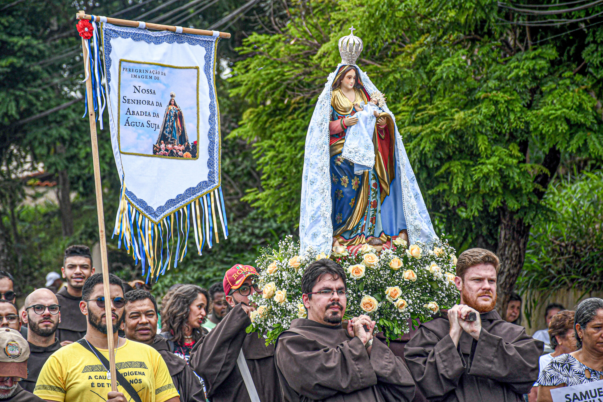 Os romeiros participam de uma celebração eucarística no Santuário de Nossa Senhora do Rosário presidida por Dom Joel e participação de Dom Francisco Cota, bispo da diocese de Sete Lagoas e presidente da Comissão para Ecologia Integral e Mineração do regional leste 2 da Conferência Nacional dos Bispos do Brasil (CNBB).
