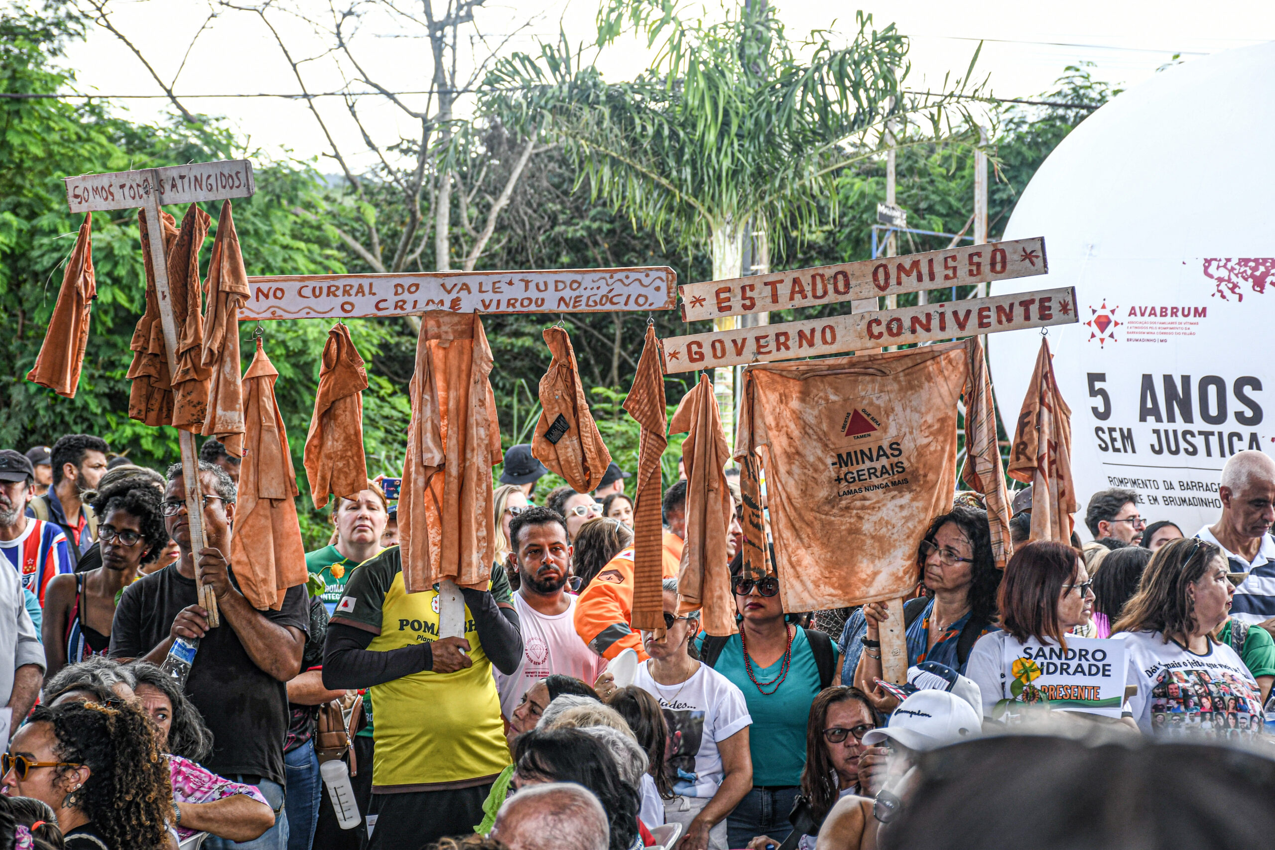 Nesta quinta-feira (25), dia que marcou o quinto ano do rompimento da barragem Mina Córrego do Feijão, centenas de pessoas se reuniram no município de Brumadinho em busca por direitos, justiça e reparação.