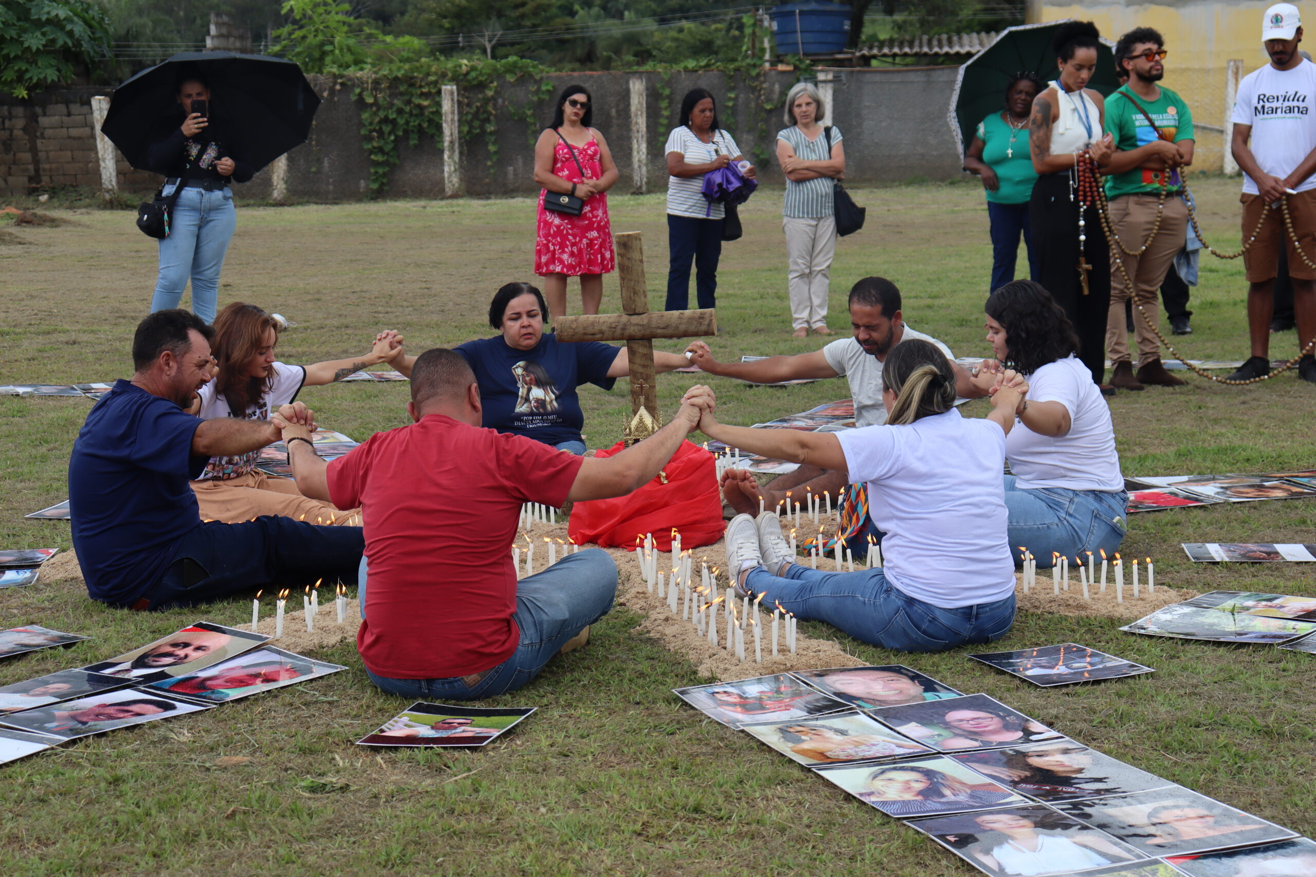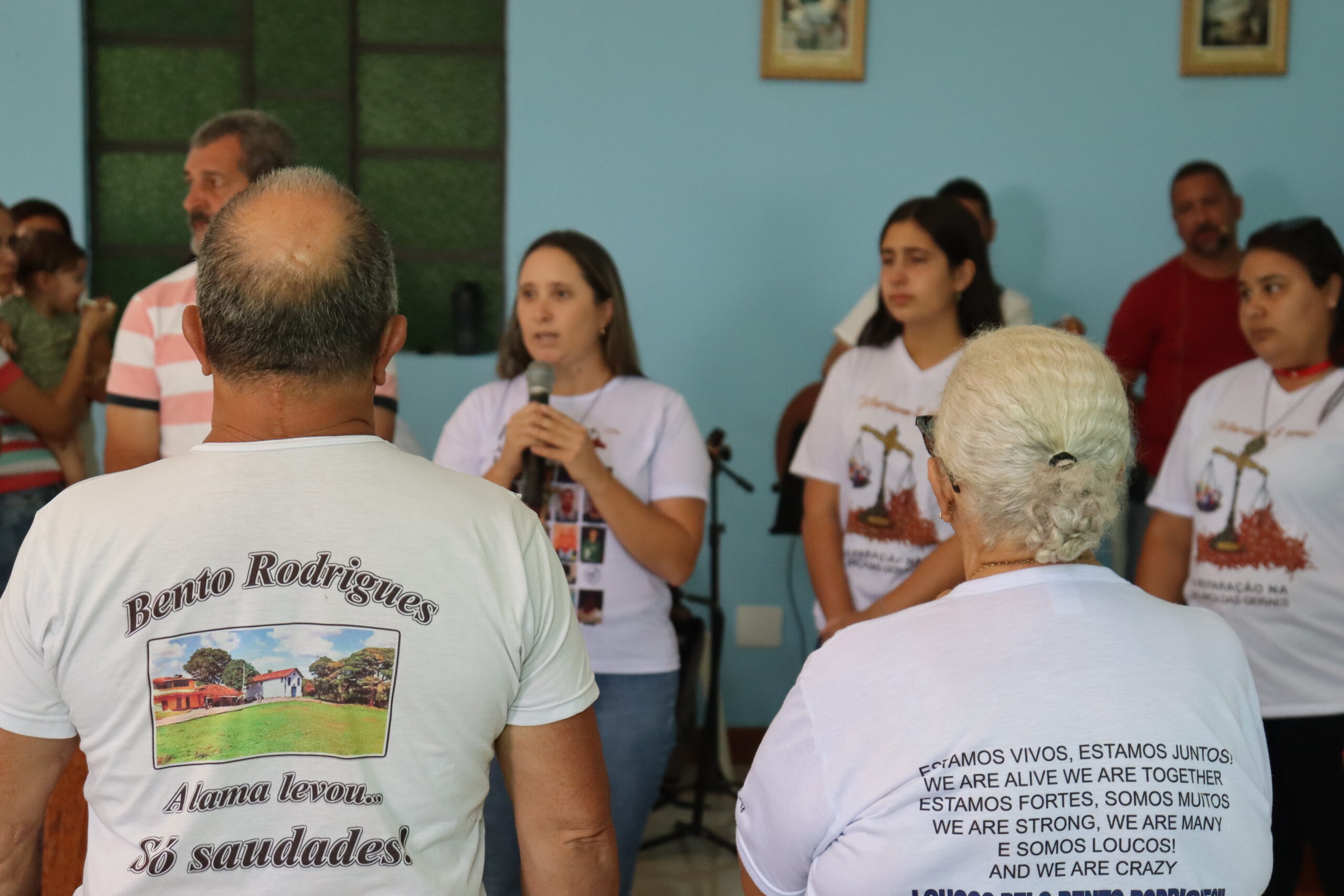 Seis pessoas atingidas de Bento Rodrigues estiveram na missa para prestar solidariedade aos atingidos do Córrego do Feijão. O distrito do município de Mariana foi soterrado pelo rompimento da barragem de Fundão, de propriedade da mineradora Samarco, controlada pela Vale e BHP Billiton, em 2015. O desastre-crime matou 19 pessoas, contaminou o Rio Doce e atingiu, de forma dramática, as populações e os modos de vida em municípios de Minas Gerais e do Espírito Santo ao longo da Bacia.
