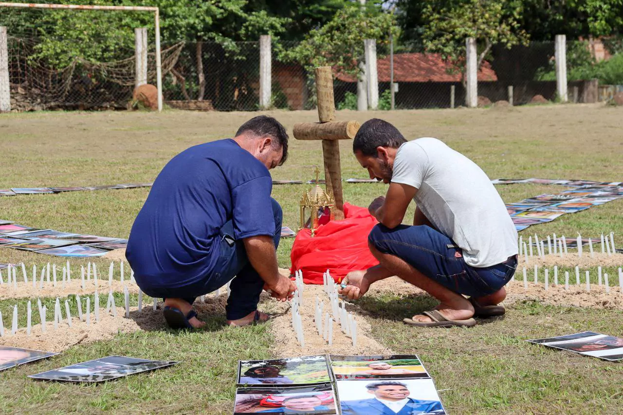 As 272 joias estiveram presentes nas vozes de amigos e familiares que, no primeiro momento de comunhão, rezaram 272 Ave Marias, no campo de futebol situado em frente à igreja. A atingida Carmen Sandra Barbosa de Paula, nascida e criada na comunidade, foi uma das organizadoras da celebração. Ela explica que o dia é dedicado para lutar pela memória e justiça às vítimas que hoje não podem falar.