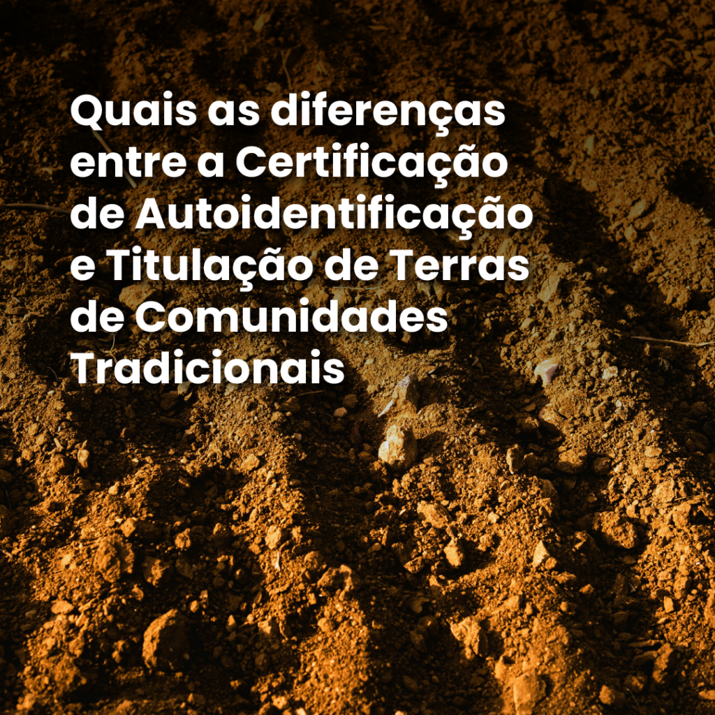 Vimos que Autoidentificação ou Autodeclaração, Certidão de Autoidentificação e Titulação de Terras, apesar de serem etapas de um mesmo processo e se relacionarem em razão do mesmo propósito, que é a proteção e garantia de direitos específicos para povos e comunidades tradicionais, são instrumentos que possuem finalidades diferentes, realizados por instituição distintas e que acontecem também em tempos diferentes.