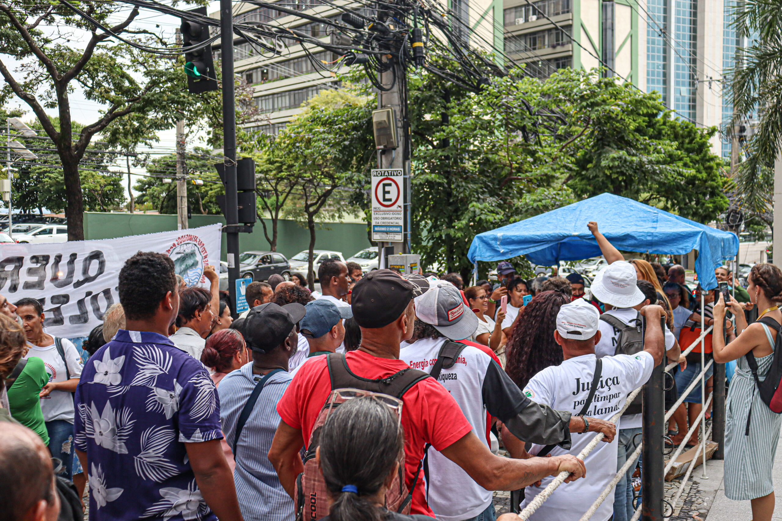 Reunião com lideranças atingidas das cinco regiões foi acompanhado por um ato, em frente ao TJMG, em Belo Horizonte | Foto:Diego Cota/Aedas