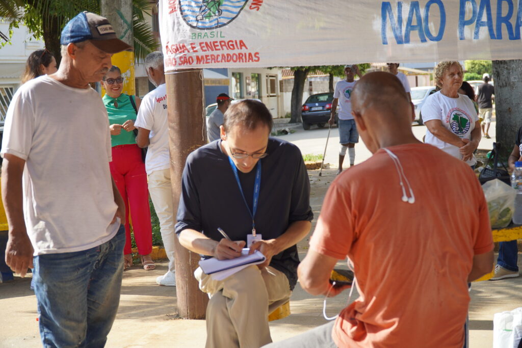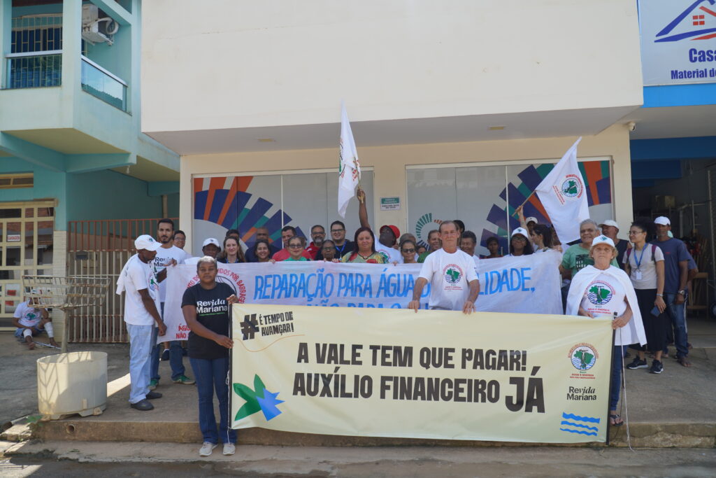 “Estamos aqui hoje em defesa de todos os nossos direitos. Sabemos da existência de várias pessoas que ainda não foram reconhecidas. Nós estamos aqui, integrantes da comissão, buscando esse direito que é seu [de ser reconhecido como atingido]. Nós já vamos para quase 9 anos e muitos ainda não foram reconhecidos. Vamos entregar a documentação no escritório da Renova e vamos buscar os direitos de cada um de vocês.. Nós pensamos que a vale tem que pagar, tem que pagar os nossos direitos. Sem luta a gente não vence”, conclui.