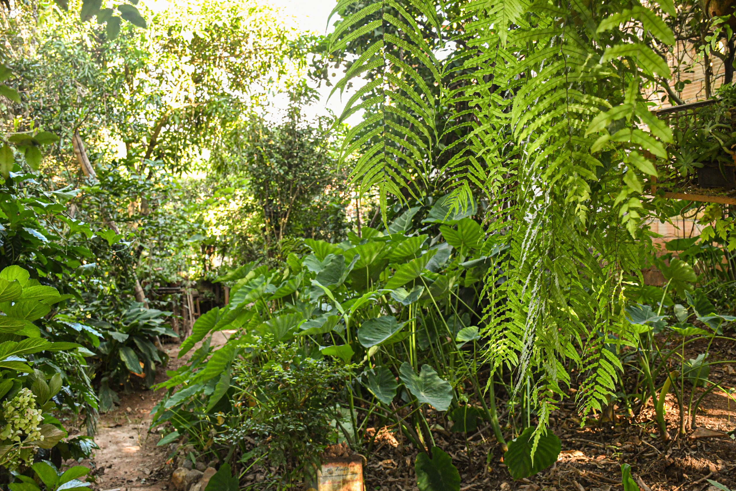 Neste quintal encantado e acolhedor, frutas, ervas e flores se convertem em amor e experiências memoráveis, como a que tive. No quintal, você encontra taioba, ora-pro-nóbis, limão, coco da Bahia, maracujá, uva, romã, jabuticaba, framboesa, suculentas, cactos, mandacaru e uma variedade de ervas que, pelas mãos das irmãs Íris e Margareth, se transformam em temperos e sais aromáticos.