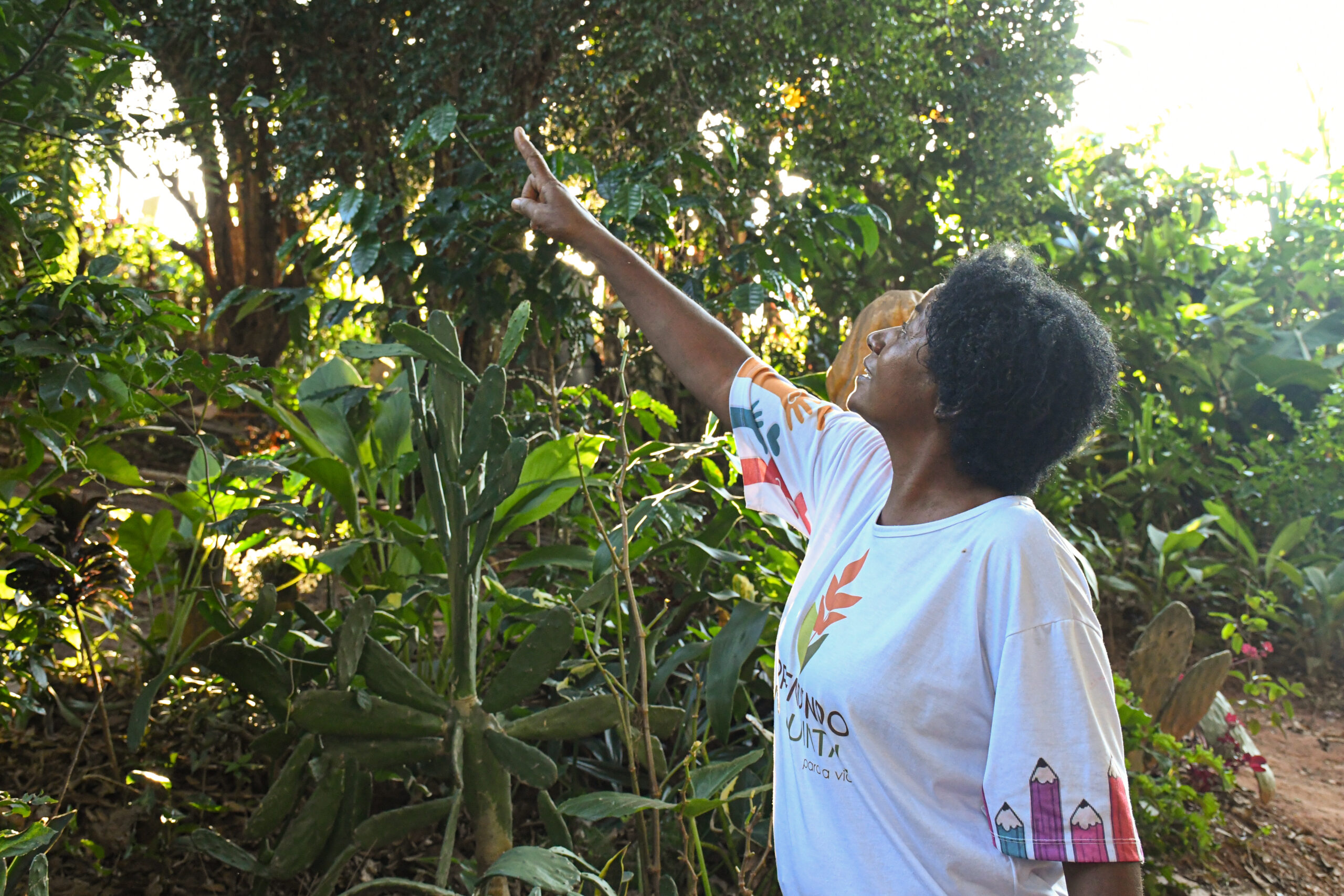No quintal de modelo agroflorestal, plantam e colhem de tudo. Margareth relembra como começou essa história ao lado da sua irmã: “Íris fazia as covas e eu plantava as sementinhas. Colhemos muito e a partir disso criamos o projeto. Uma vida sem criação é uma vida morta. O que está em nossa mente precisa ser compartilhado com o mundo”.