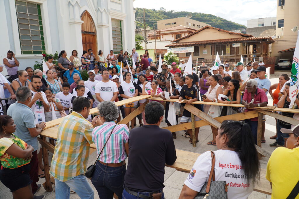 Após Aimorés, a mobilização para entrega das listas aconteceu dias depois no município de Resplendor. Concentrados no pátio da igreja matriz, dezenas de pessoas atingidas pelo rompimento da barragem de Fundão protestaram, na última sexta-feira (10), contra as negativas de acesso ao Auxílio Financeiro Emergencial da Fundação Renova.