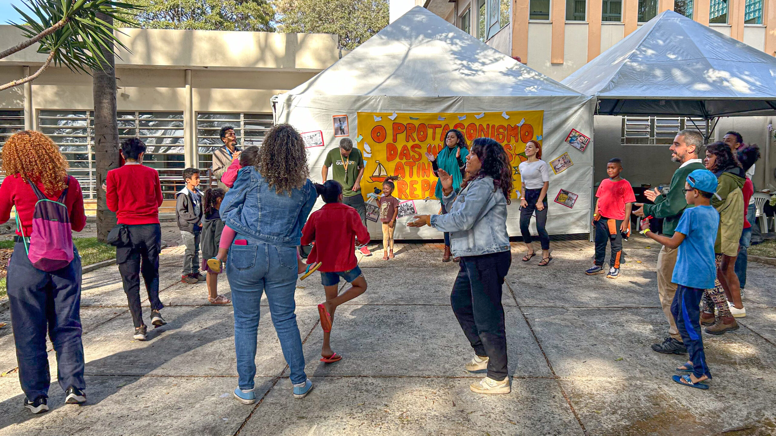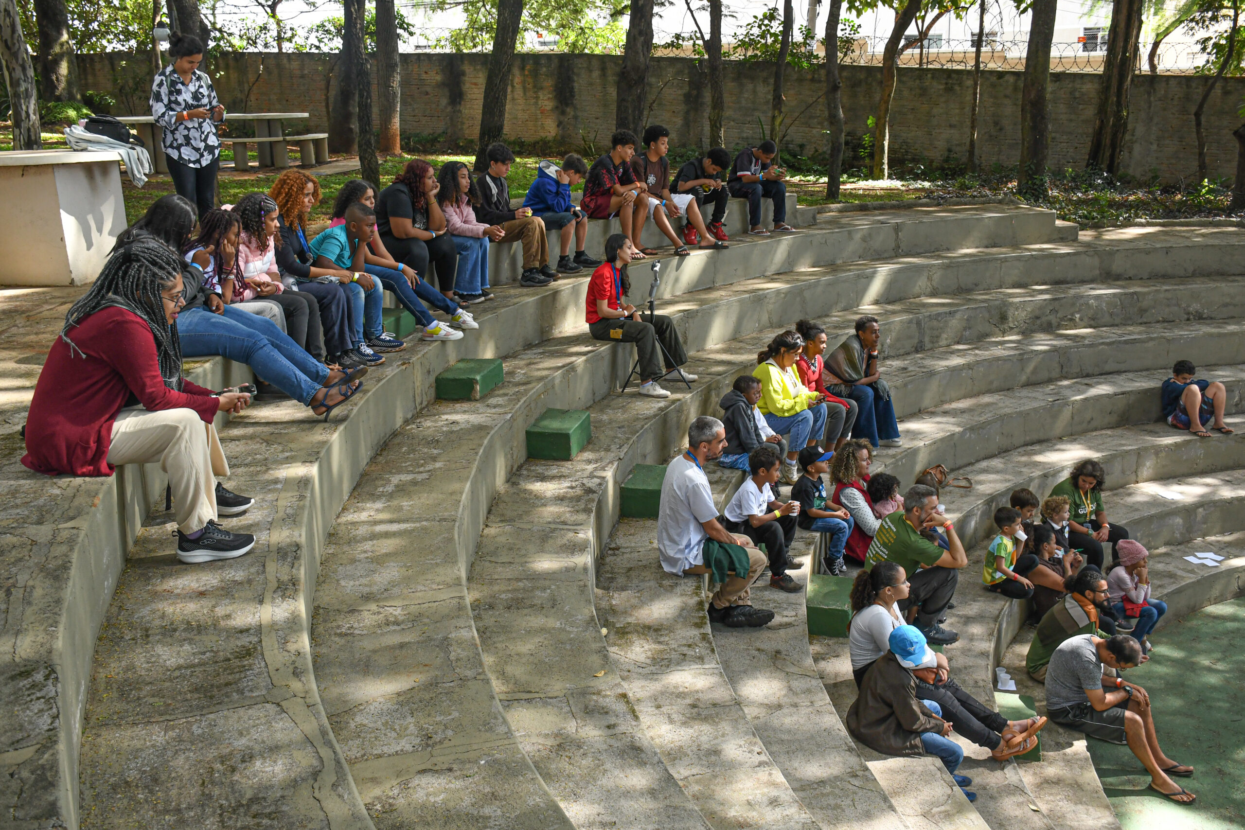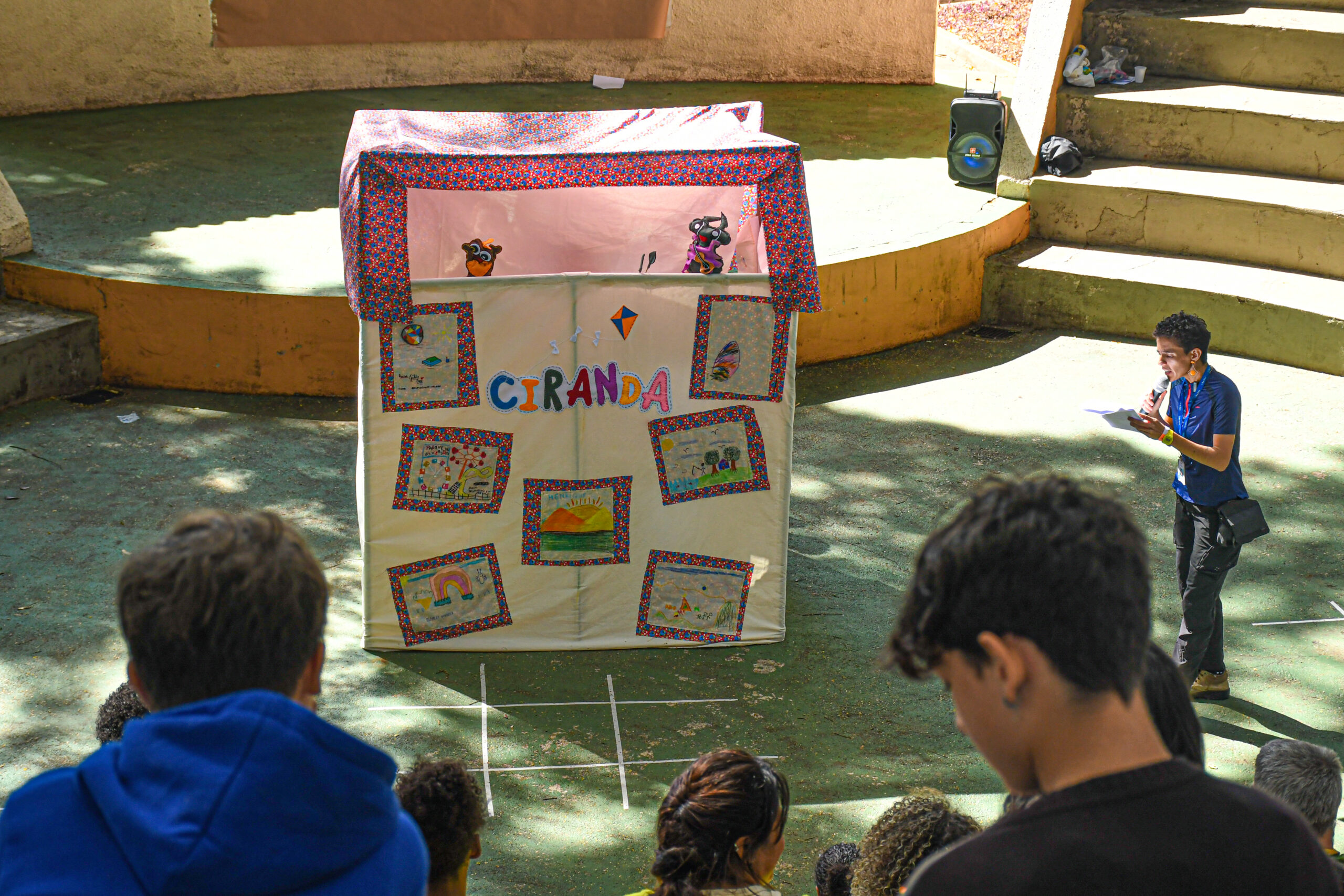 Os temas abordados na Ciranda do Encontro Inter-Regional da Bacia incluíram educação financeira, crise climática e disque reparação, com atividades específicas para cada faixa etária, como teatro, música, grafite, atividades lúdicas, filmes, oficinas e confecção de cartazes.