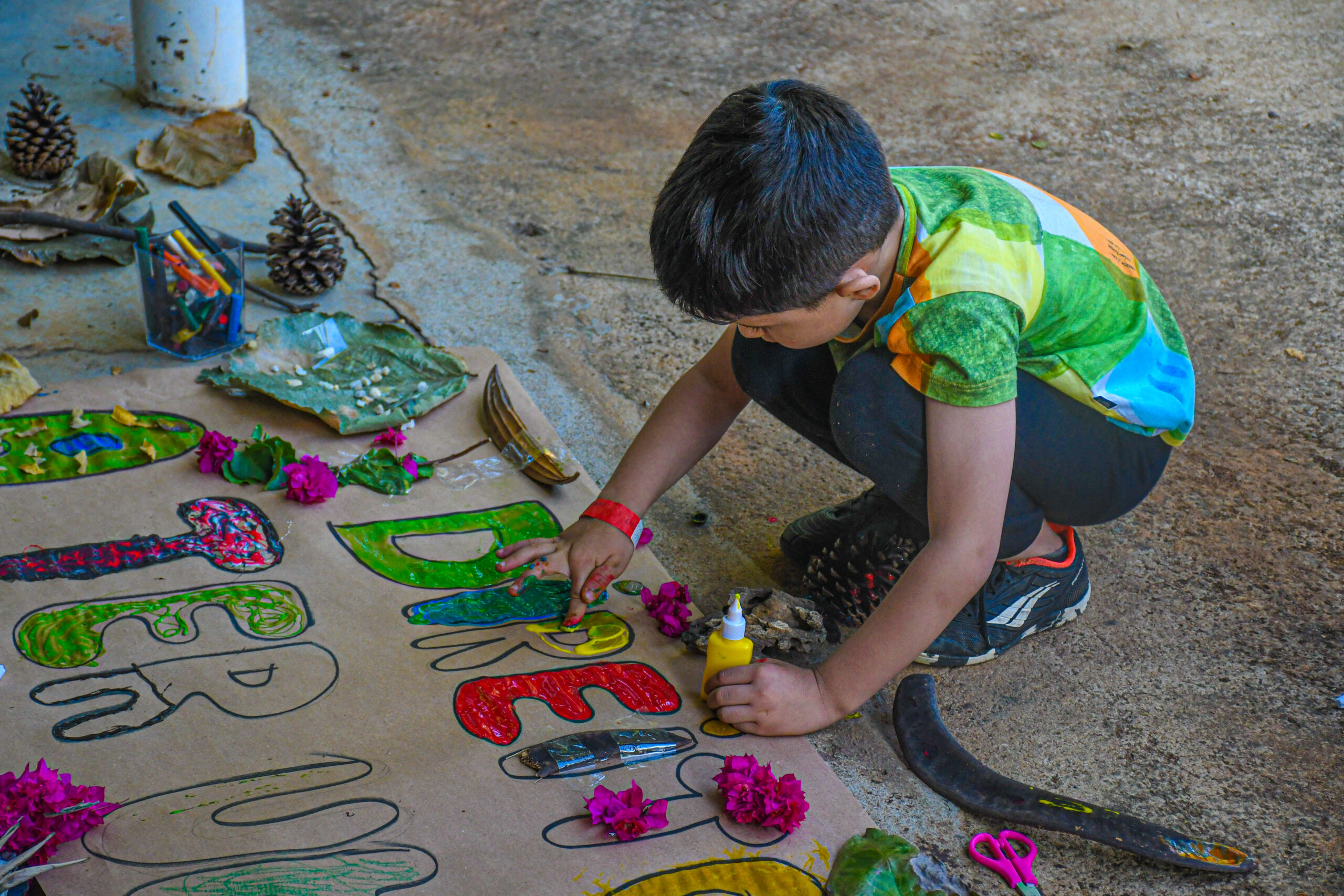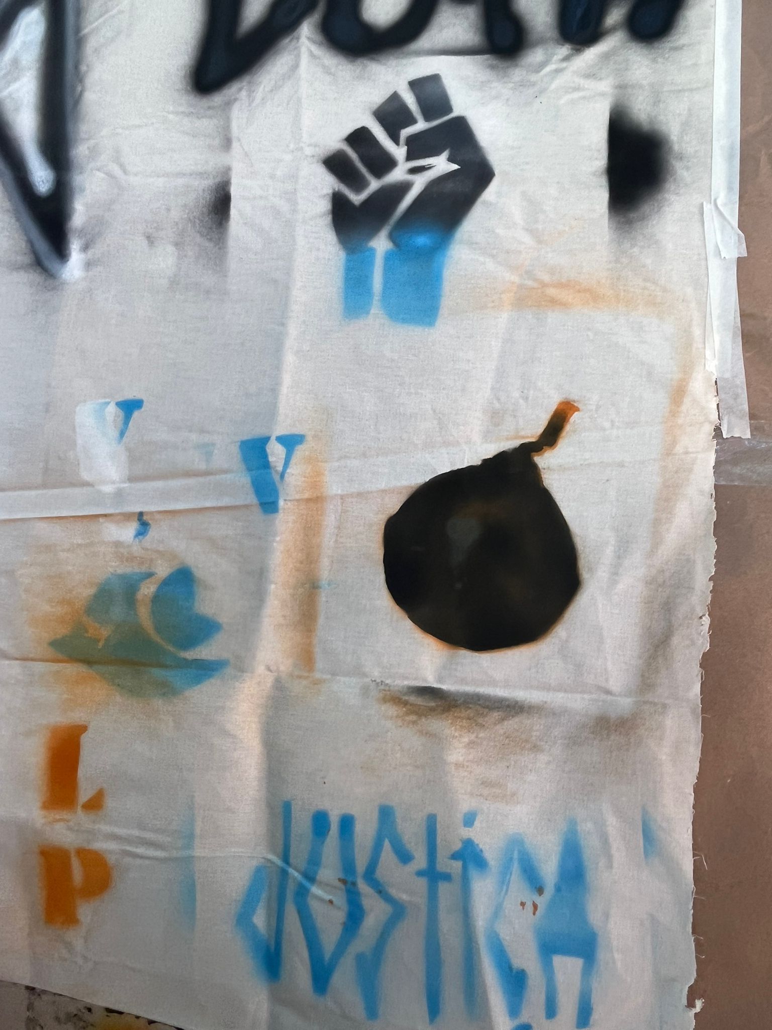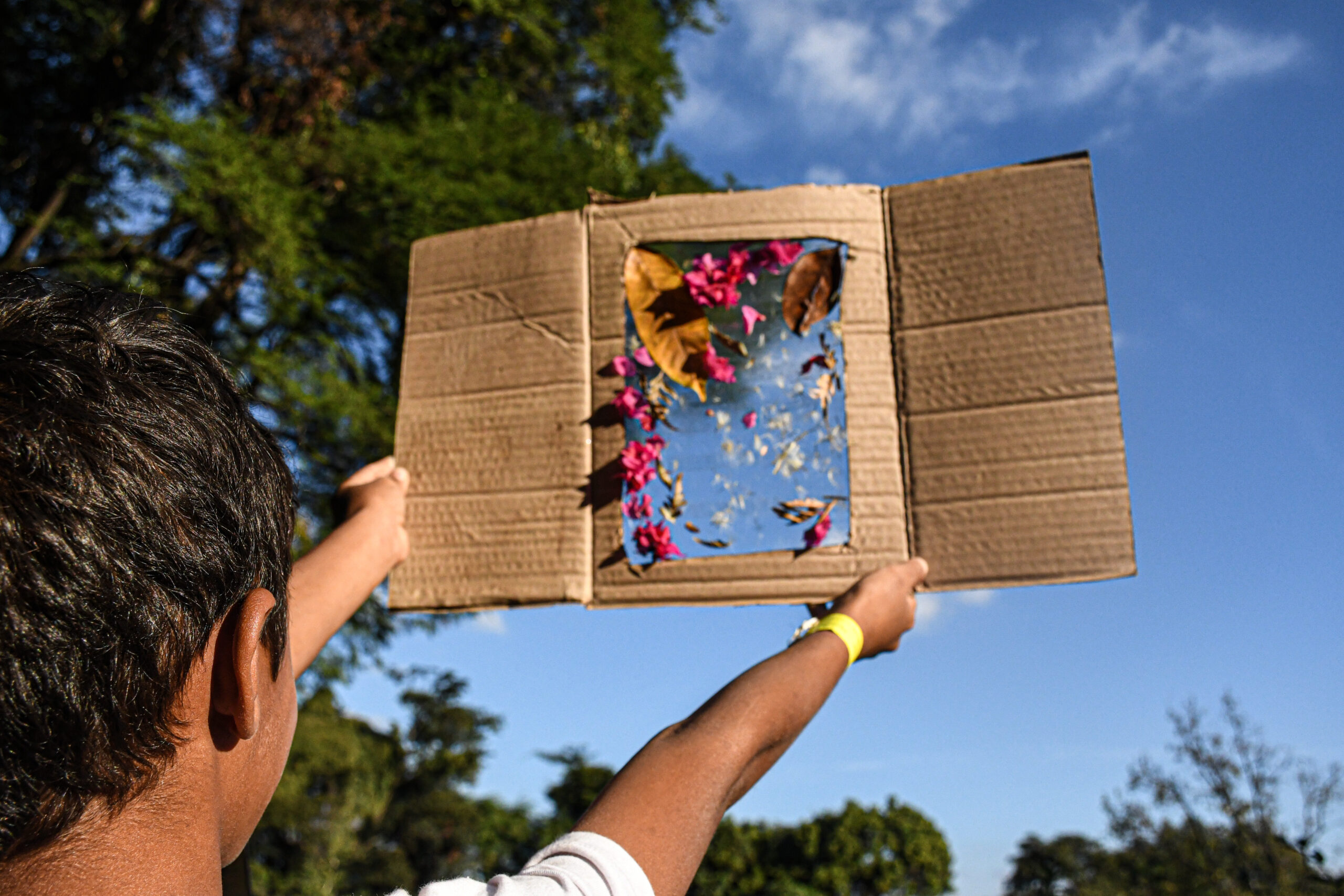 Durante o almoço de domingo, eles fizeram uma intervenção cantando, batucando e apresentando os trabalhos realizados ao longo do encontro. Na paródia cantada por todos os presentes, as crianças e adolescentes destacavam na letra a importância de se organizarem como grupo em prol da luta pela reparação. Nas faixas produzidas com stencil em material natural, traziam frases e desenhos sobre a luta popular e o cuidado com o meio ambiente.