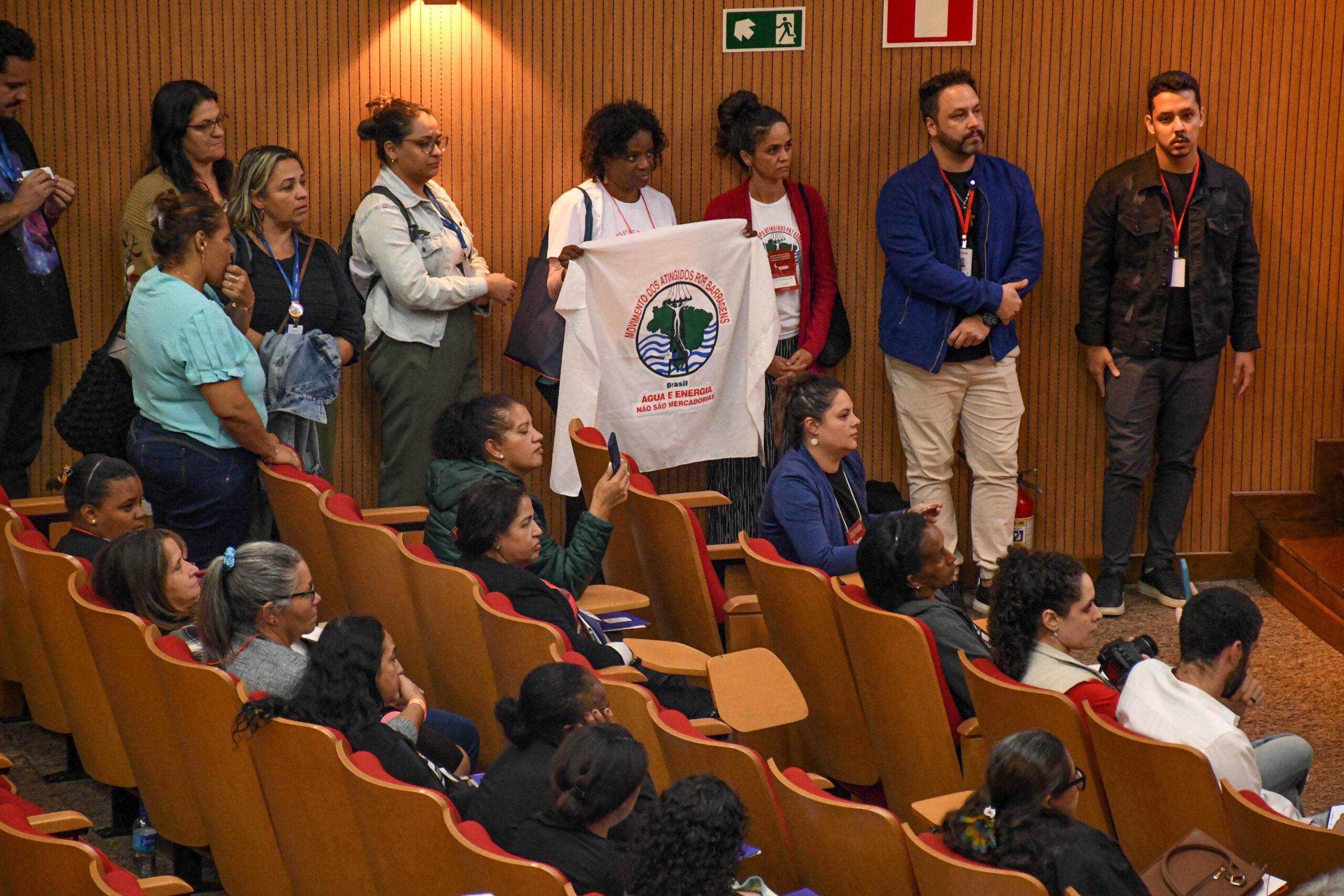Atingidos e atingidas das cinco regiões da Bacia do Paraopeba e Represa de Três Marias no auditório da plenária | Foto: Felipe Cunha – Aedas