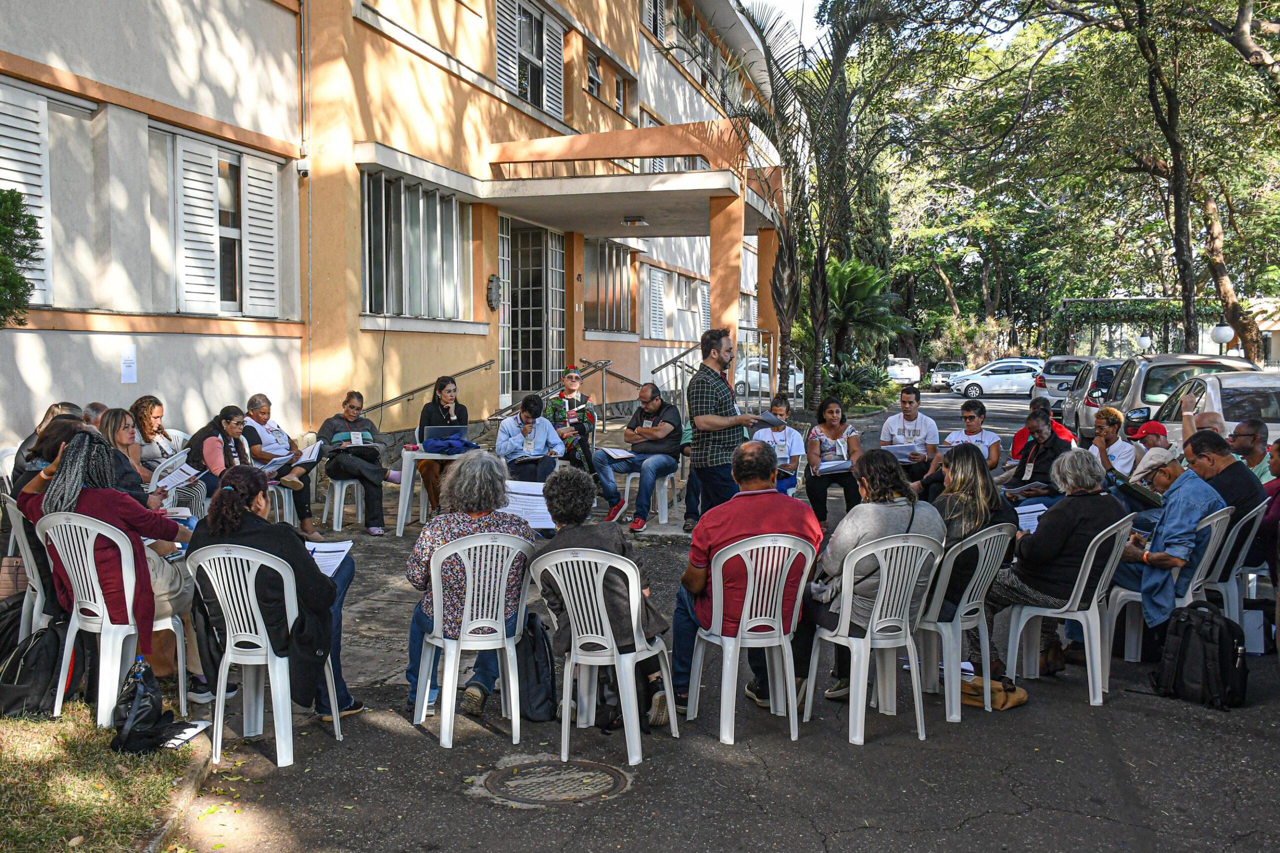 Grupos de debates temáticos fizeram parte da metodologia do Encontro, antes de se dirigirem à plenária. | Foto: Felipe Cunha – Aedas