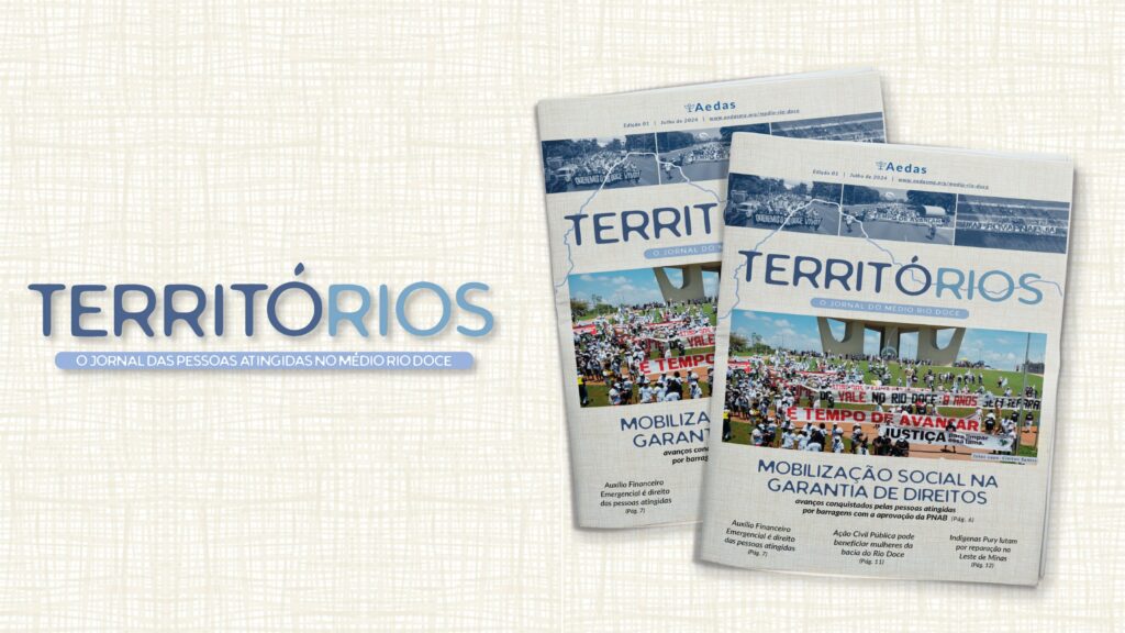 A primeira edição do Jornal Territórios já está circulando nos municípios assessorados pela Aedas no Vale do Aço e Leste de Minas, com o objetivo de informar, documentar e comunicar histórias; relatar os danos persistentes e fortalecer a busca por justiça e reparação das comunidades atingidas pelo rompimento da barragem de Fundão, um desastre-crime de responsabilidade das empresas Samarco, Vale e BHP Billiton.