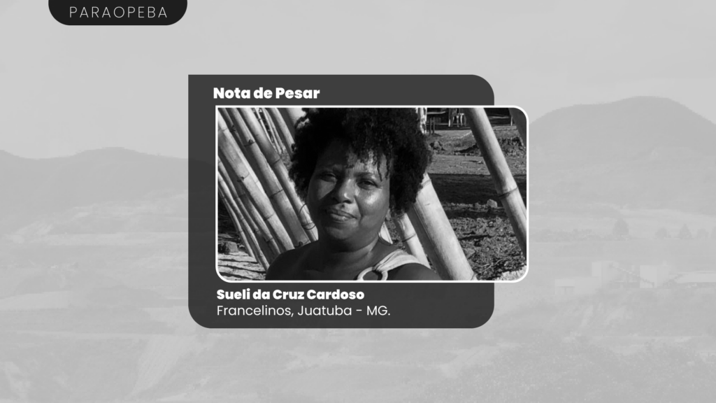 A Assessoria Estadual de Defesa Ambiental e Social manifesta pesar pelo falecimento da integrante da comissão do bairro Francelinos em Juatuba, Sueli da Cruz Cardoso, uma mulher de luta, forte e trabalhadora, que sempre irradiou a todos e todas com seu carisma, gentileza e alegria.