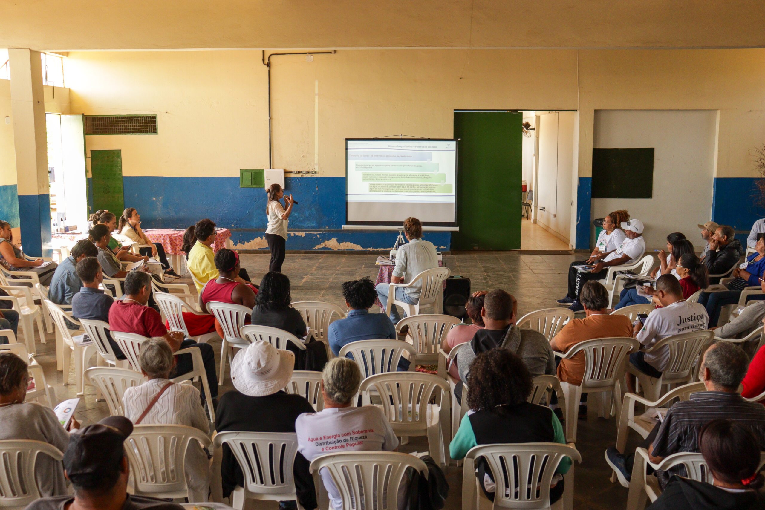 Atingidas e Atingidos dos municípios da Região 2 participaram da etapa comunitária para devolutivas do levantamento de danos socioambientais e à saúde realizado pela consultoria EcoEnviroX e do estudo sobre a recuperação do Rio Paraopeba feito pela Probiota, contratadas pela Aedas. Foram promovidos quatro encontros, entre os dias 17 e 24 de agosto, para diálogo e exposição dos resultados das amostras coletadas na R2, que compõe o território atingido pelo rompimento da barragem da Mina Córrego do Feijão.