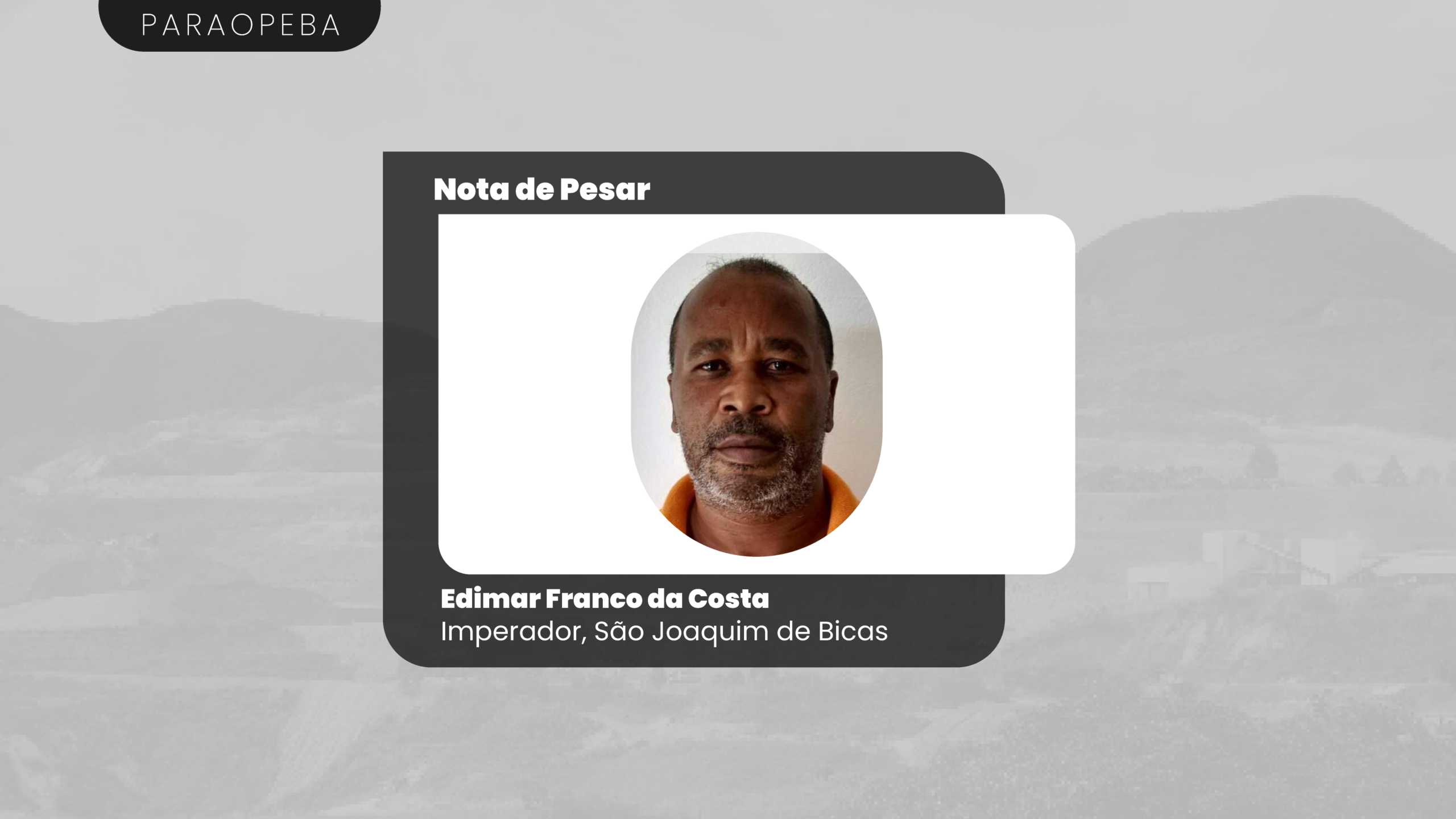 A Associação Estadual de Defesa Ambiental e Social (Aedas) recebe com profundo pesar e expressa solidariedade pelo falecimento de Edimar Franco da Costa, morador do bairro Imperador, em São Joaquim de Bicas, Região 2.