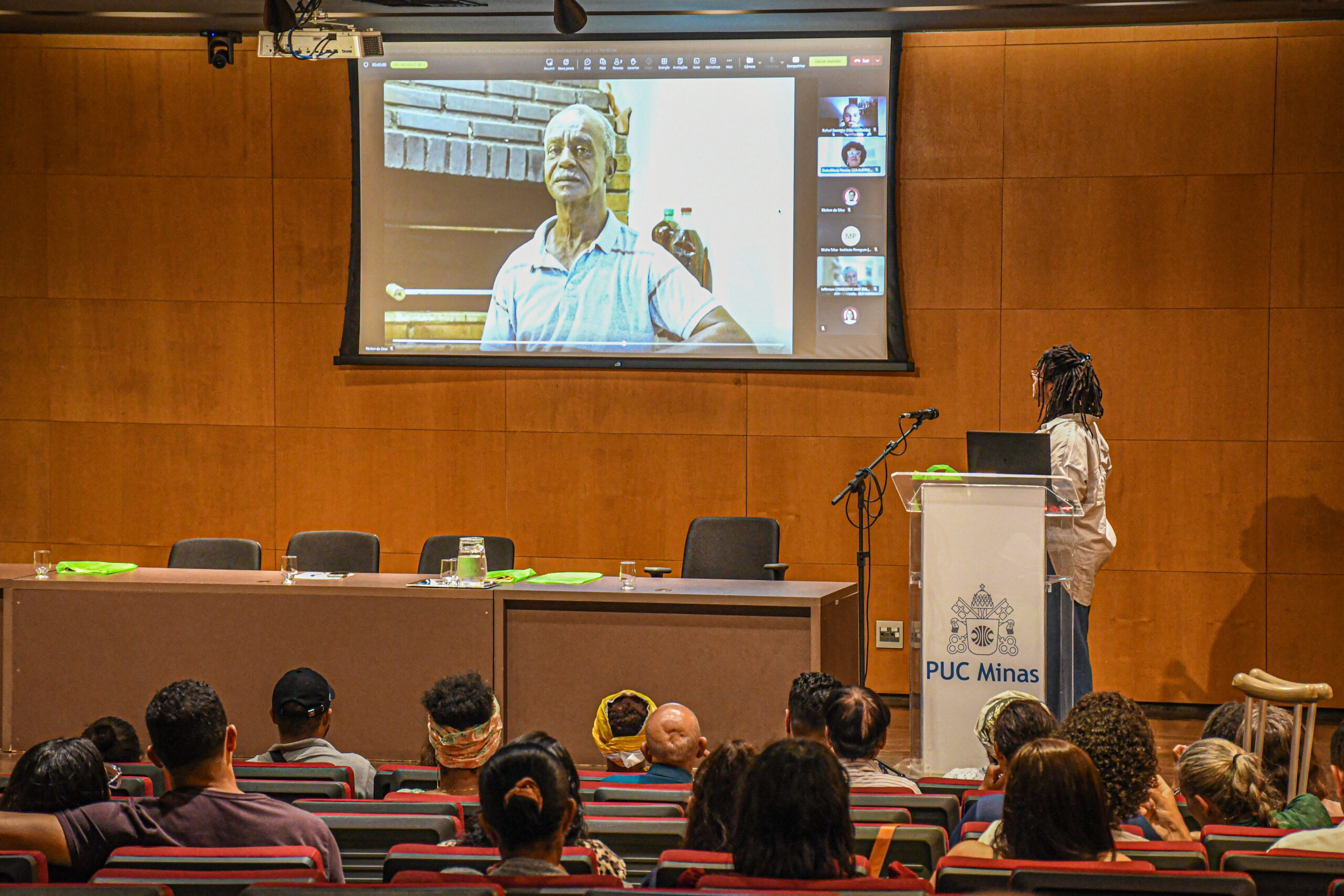 No espaço presencial, a mesa foi composta por Cecília Ribeiro, professora do curso de Psicologia da PUC Minas; Gabriela Cotta, Gerente Geral do Eixo Institucional da Aedas; Kleiton da Silva, Assessor Técnico da Equipe de Marcadores Sociais das Diferenças da Aedas; Tata Mebagandi, representante dos Povos e Comunidades Tradicionais da Região 2; e Mirian Papp, da comunidade de Vila Nova no Citrolândia, em Betim.