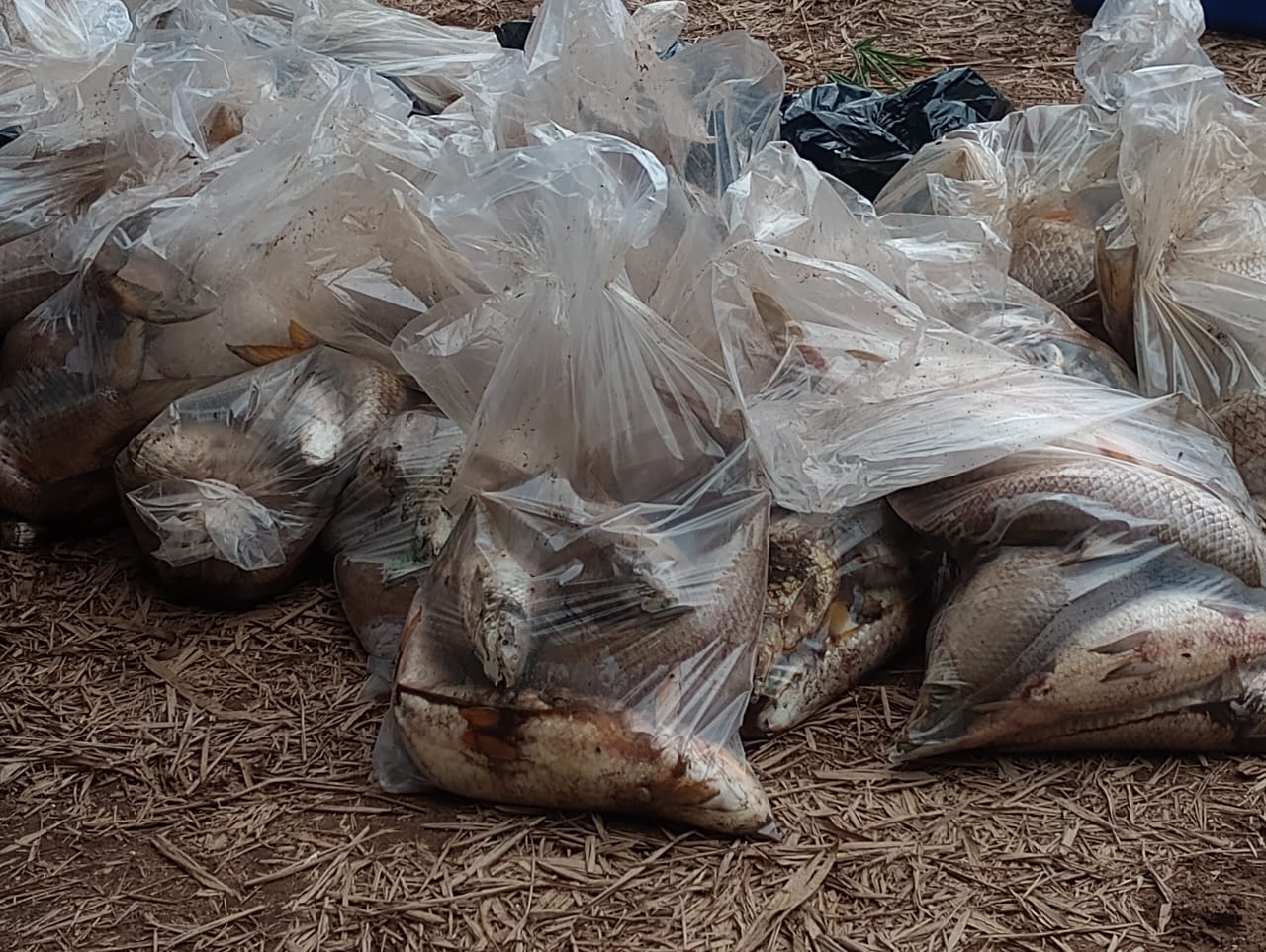 Foto da coleta dos peixes enviada por uma moradora de Francelinos, em Juatuba
