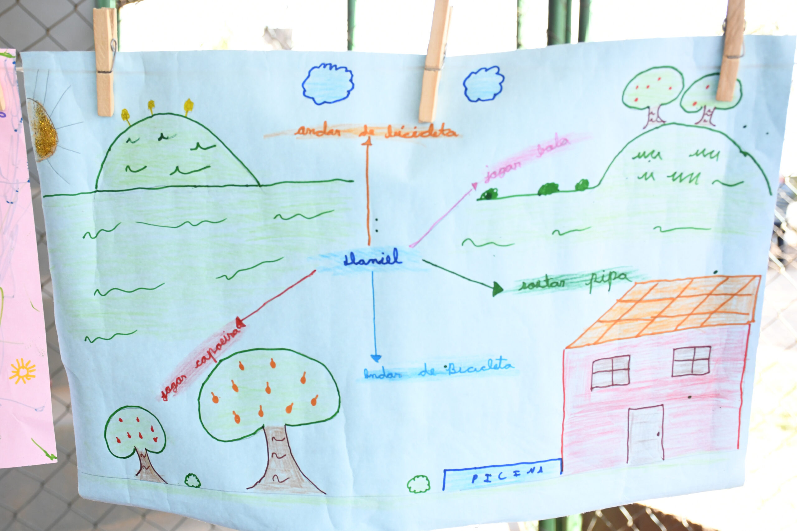 Desenhos feitos por crianças atingidas durante a Ciranda no Córrego do Feijão | Foto: Felipe Cunha – Aedas