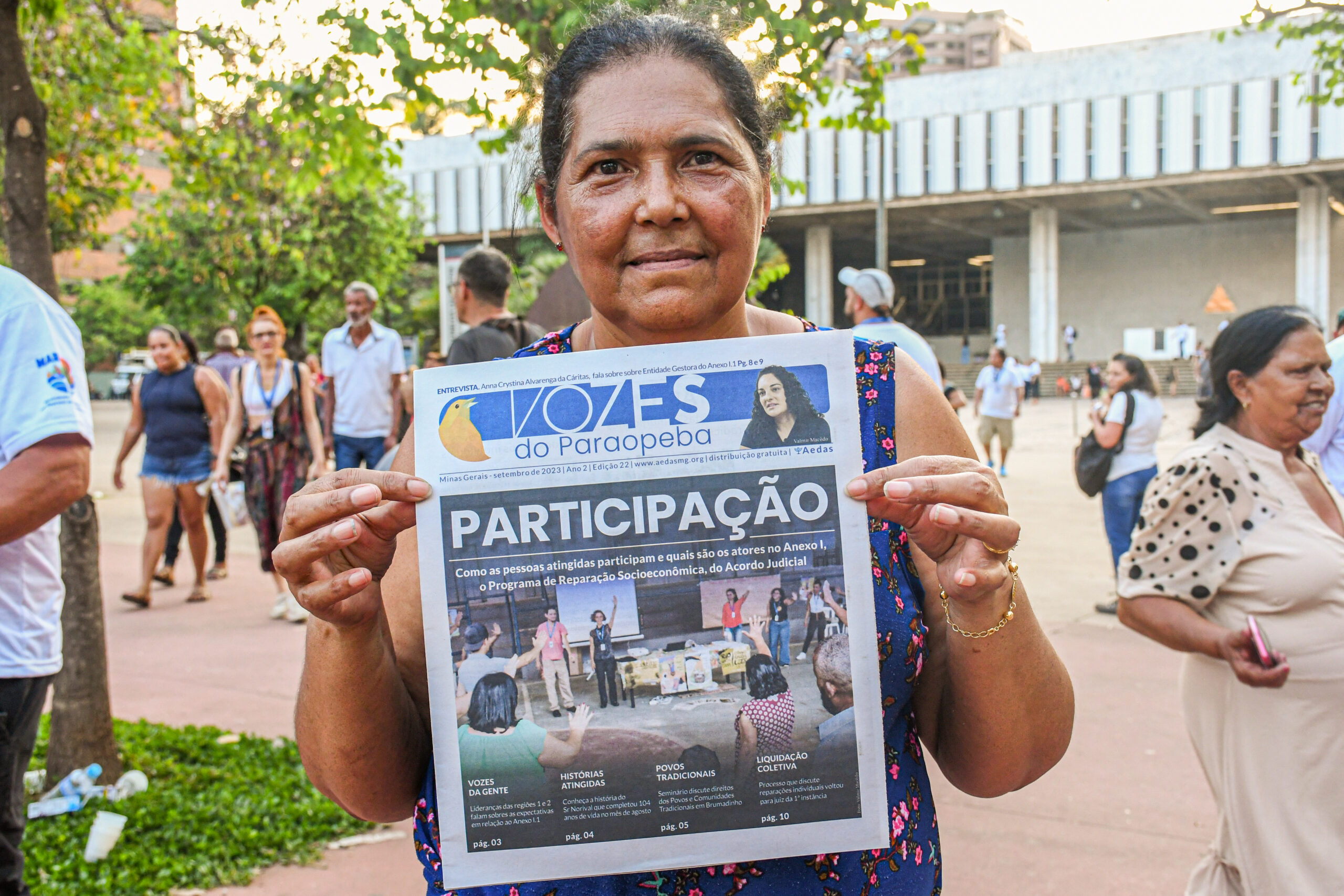 O Jornal é um organizador coletivo das pessoas atingidas e suas diversas pautas, cumprindo um papel importante para a mobilização boca a boca, na acessibilidade daqueles que não acessam internet, na identificação de sua imagem, suas histórias. Em suas páginas, a equipe de comunicação, com seus jornalistas e designers, traduz em forma (diagramação e projeto gráfico) e conteúdo (matérias, reportagens, histórias, agendas) o trabalho de todas as equipes da Aedas e das pessoas atingidas no processo da Reparação. O Vozes é Participação Informada com jornalismo, poesia, literatura e luta social”, finaliza Diva Braga.