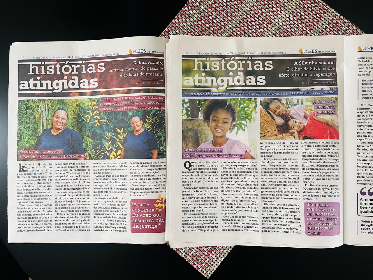 Já são mais de 300 mil exemplares impressos, que levaram aos leitores temas como o Anexo I.1, o direito à ATI, a luta dos Familiares de Vítimas Fatais, das mulheres, da população negra, pela saúde e qualidade de vida no território atingido, entre outros.
